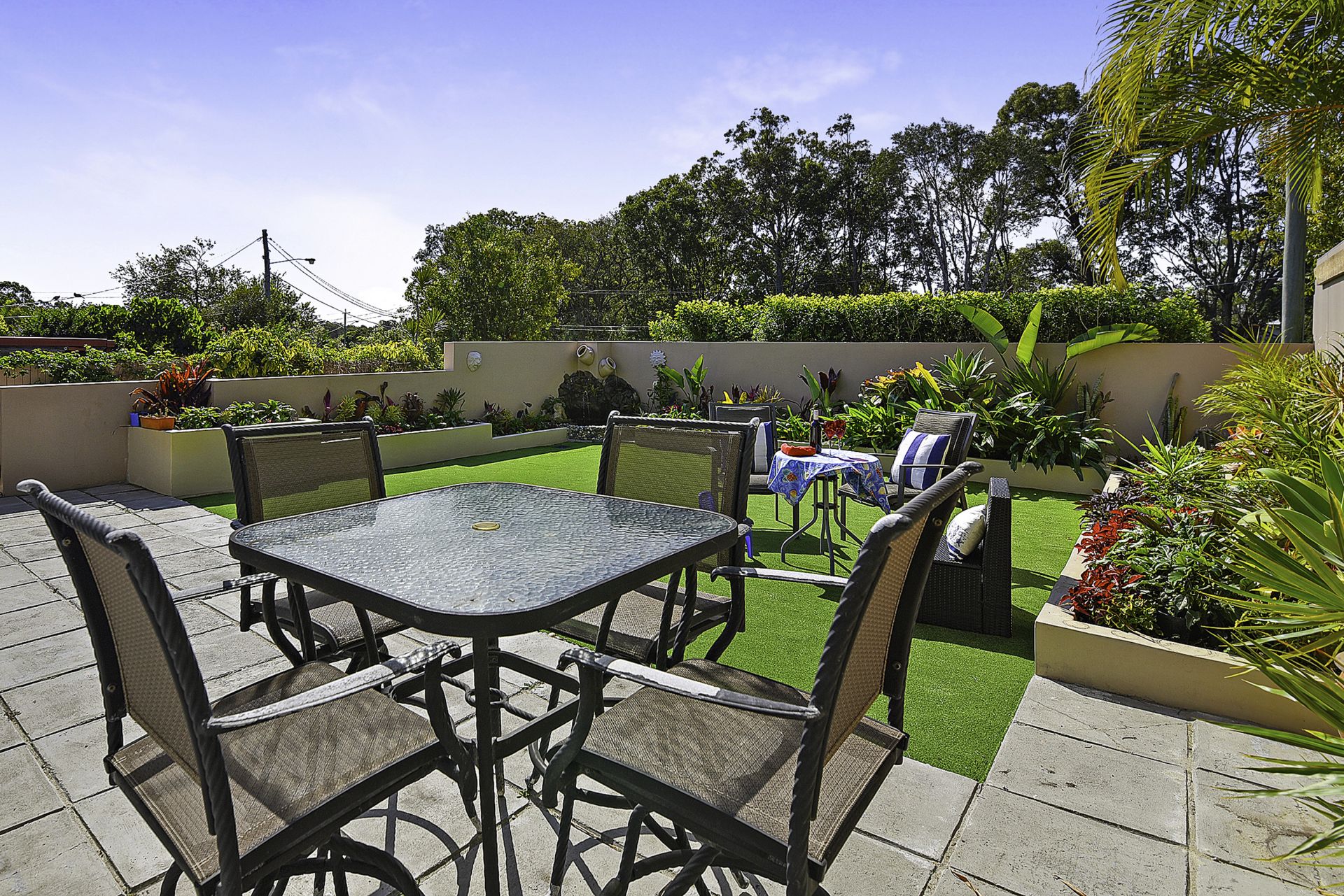- Low maintenance tropical gardens with courtyard water feature