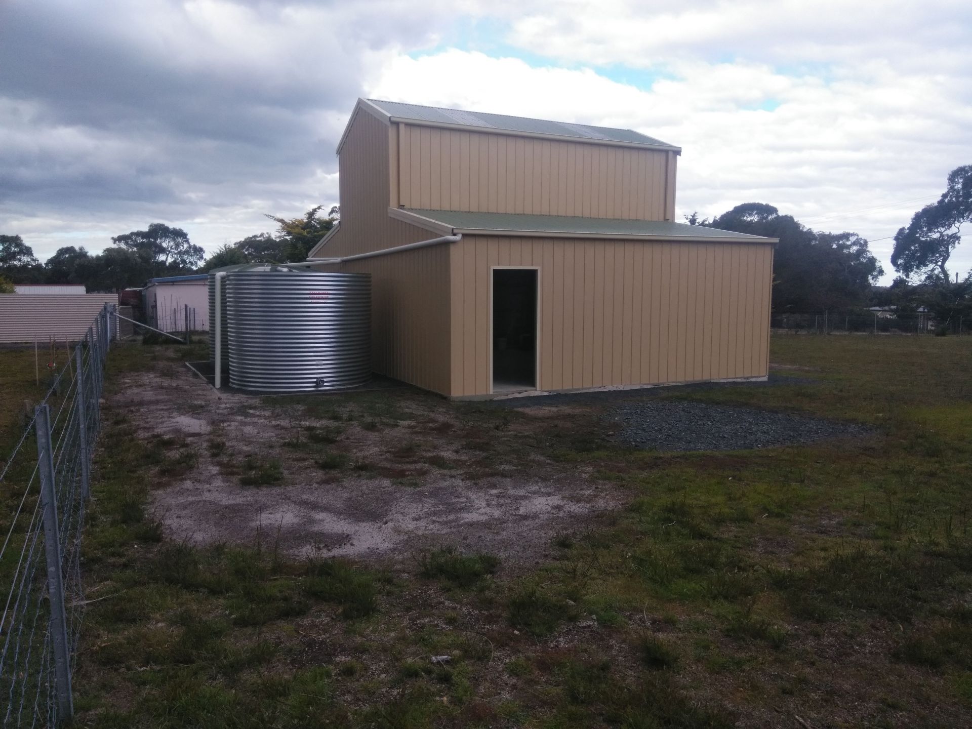 Offered for sale at popular Ansons Bay in the Bay of Fires region of Tasmania's East coast is an excellent flat, securely fenced, building block of approx 1360m2. The block is cleared and well drained with stormwater, conduits and access pits for Telstra and power in the ground. Onsite is a 9.5m x 7m American Barn that has been designed with extra height for a second storey. The shed has been set out for developing into a dwelling, but if required to take a larger boat or van the roller door header can be lifted to give a 3m x 2.7m opening.(The door is a 3m door, all that is required is to extend the side flashings.) Power is connected to the shed and there are two 10000 litre water tanks onsite. All that is required is a portable toilet and you are ready to start building. There are water views of Ansons Bay and being on the top side of the road you can't be built out with no risk of flood damage due to the elevated position.