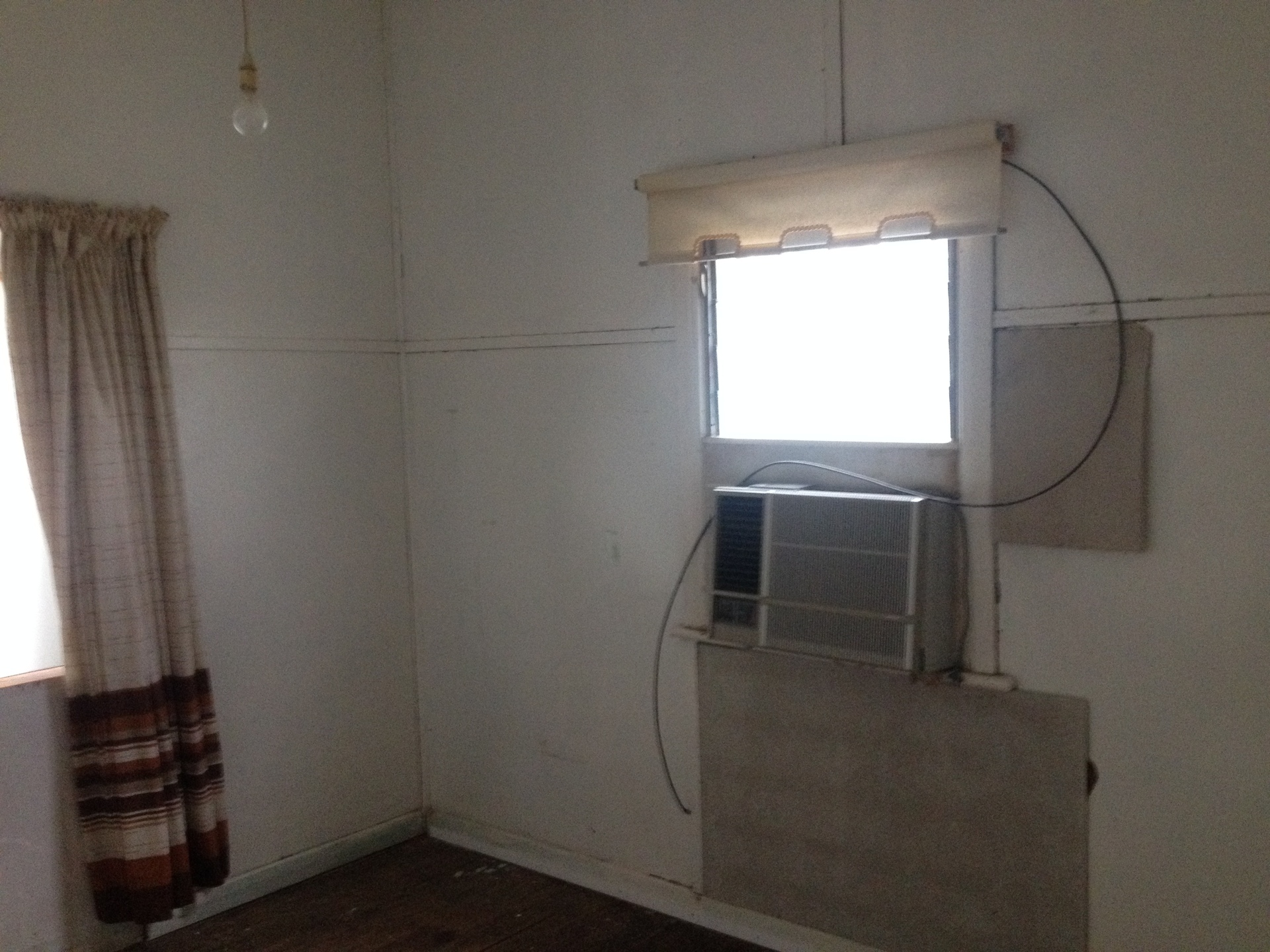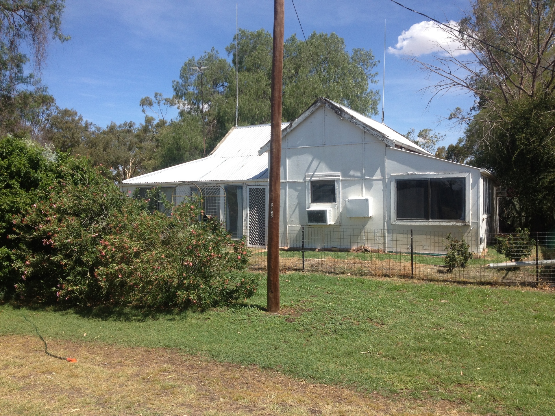 The home is old and in need of TLC and ideally wants replacing. The floors are water damaged, sunken and uneven, and the white ants have taken their toll in places. However, it is currently liveable with several bedrooms, a kitchen, dining/lounge, laundry, bathroom and sunroom etc. it has 4 "window rattler" air con systems, gas hot water, gas stove, power, and wood heating.