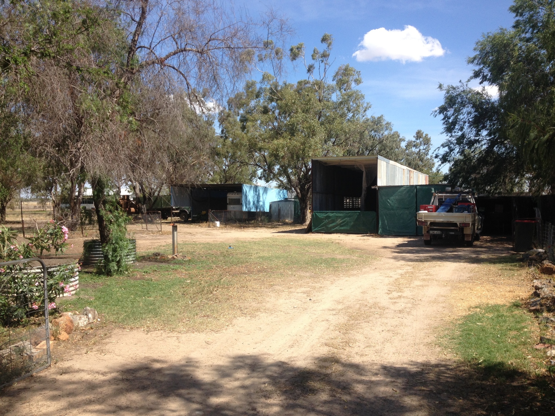 Being strategically located 3 klms off the Carnarvon Hway, and just a walk from the Gil Gil Creek, Moree is an only an hours drive, Goondiwindi an hour and a half and Mungindi only 20 minutes with schools, grocery stores and everything else you need. Mail 3 times a week. Cheap rates.
