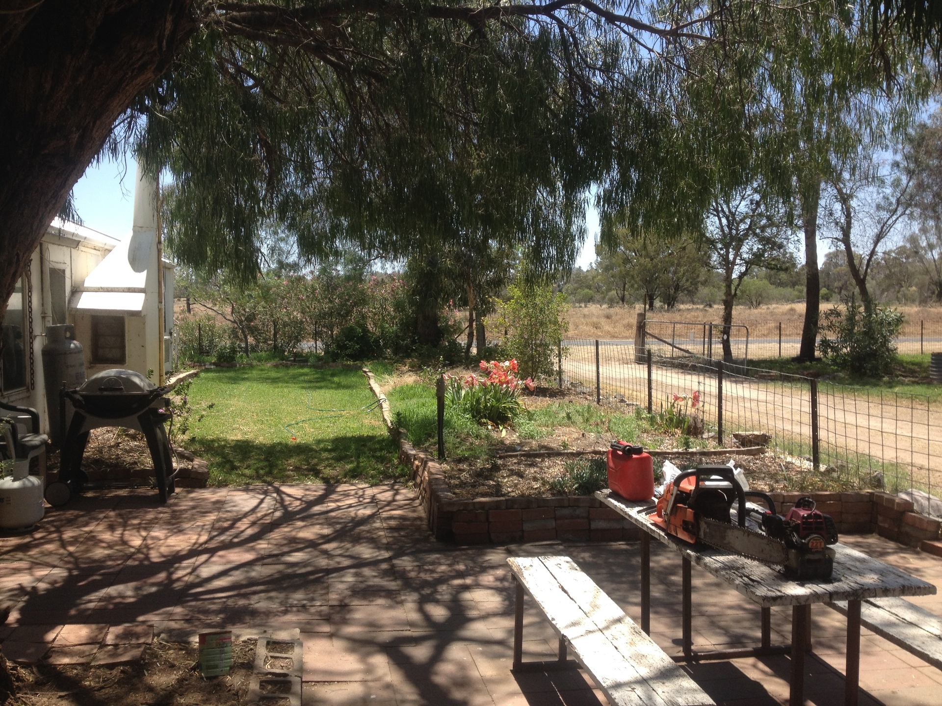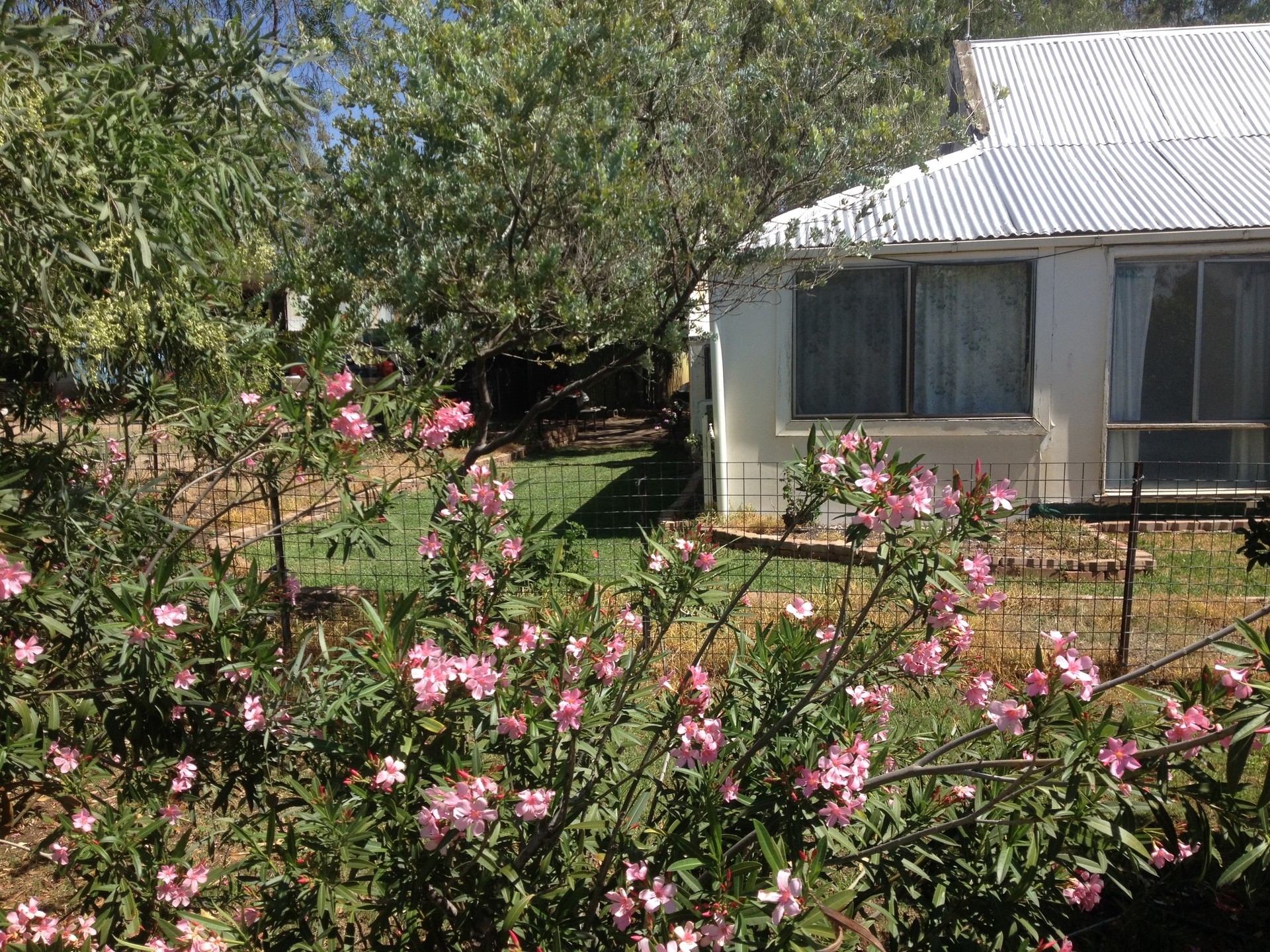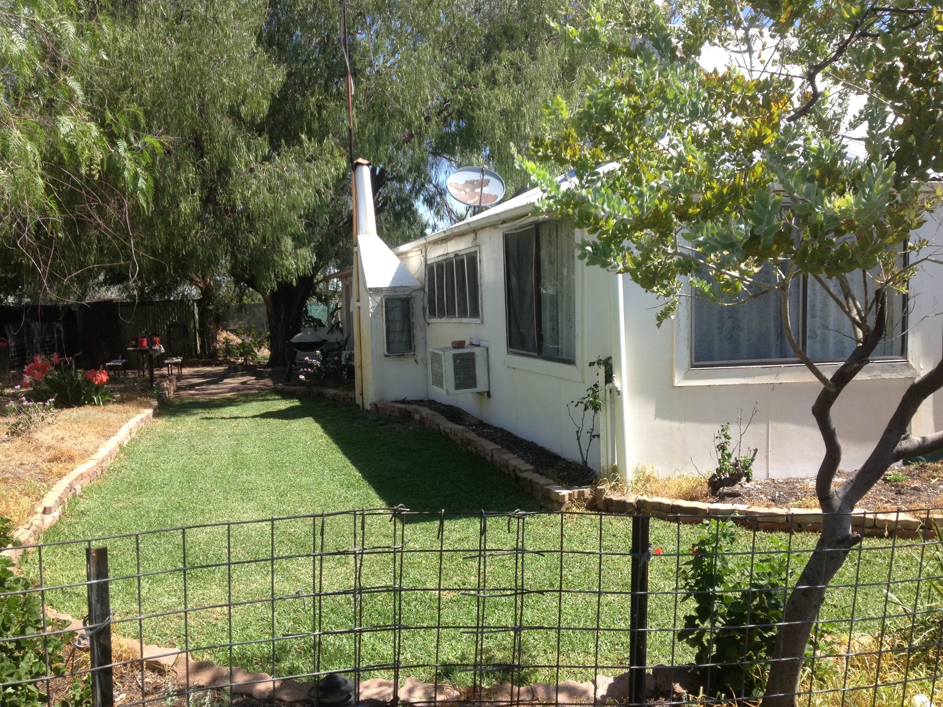 Set in an attractive garden with established trees and lawn, greenhouse, fruit trees, organic heirloom vegetable gardens, grape and passion fruit vines, chook house, dog pens, grain silo, town water and rainwater, and HEAPS of sheds with ample space for storage and working.