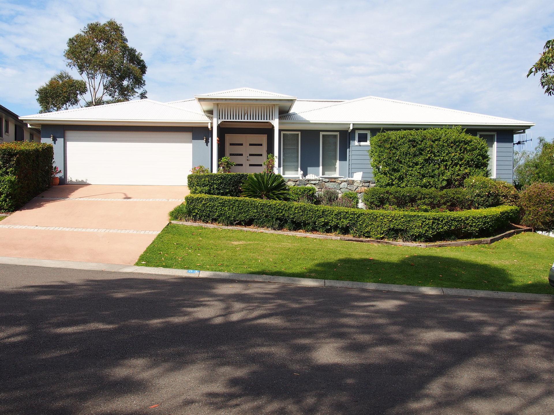 Elevated 4 bedroom home on leafy, sunny, corner block. Positioned high in the dress circle area of Tallwoods Village.