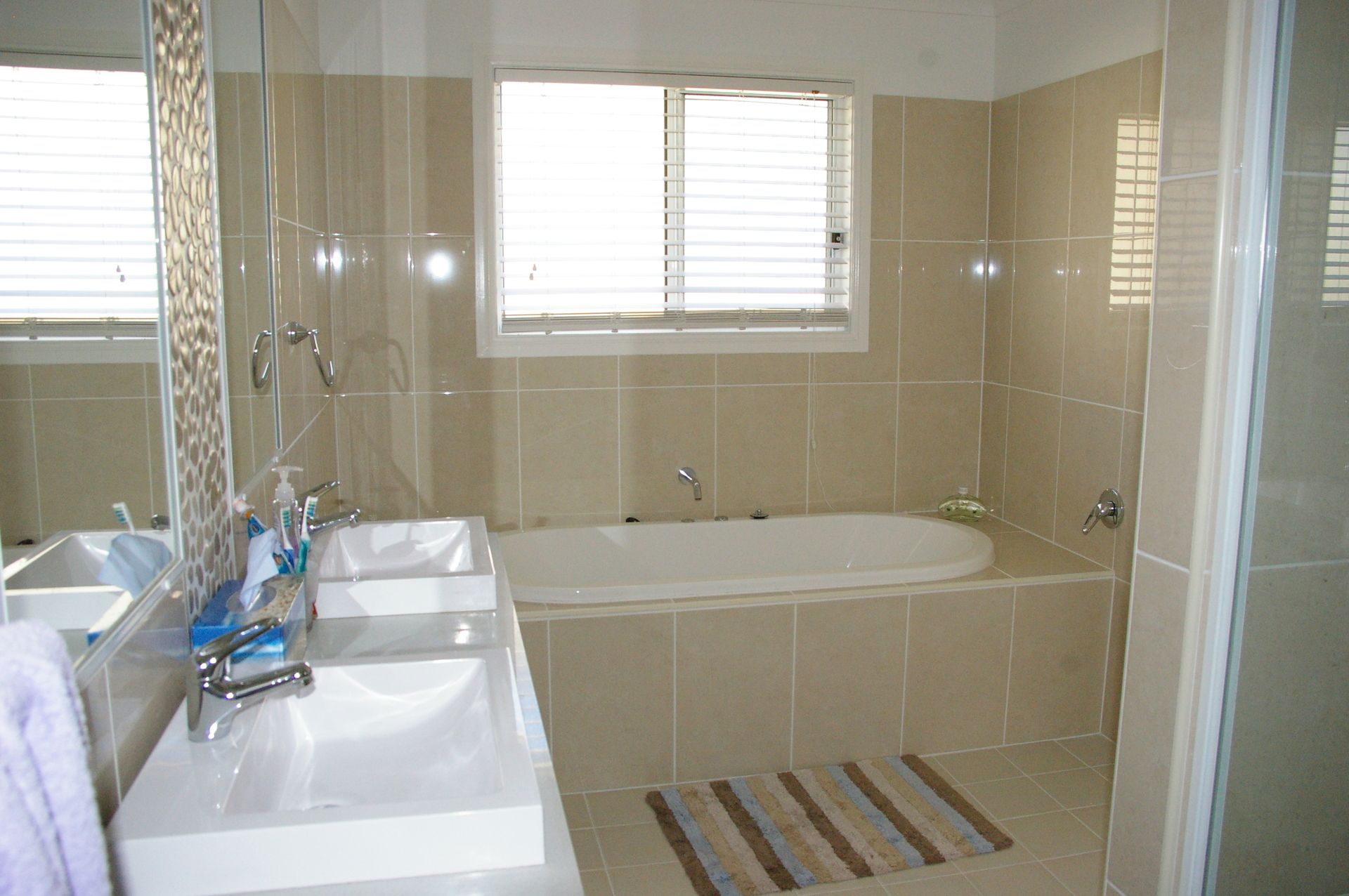 Generously proportioned main bedroom featuring an impressive walk-through robe. As new ensuite complete with double shower, double vanity and spa bath. Walk-in linen closet.