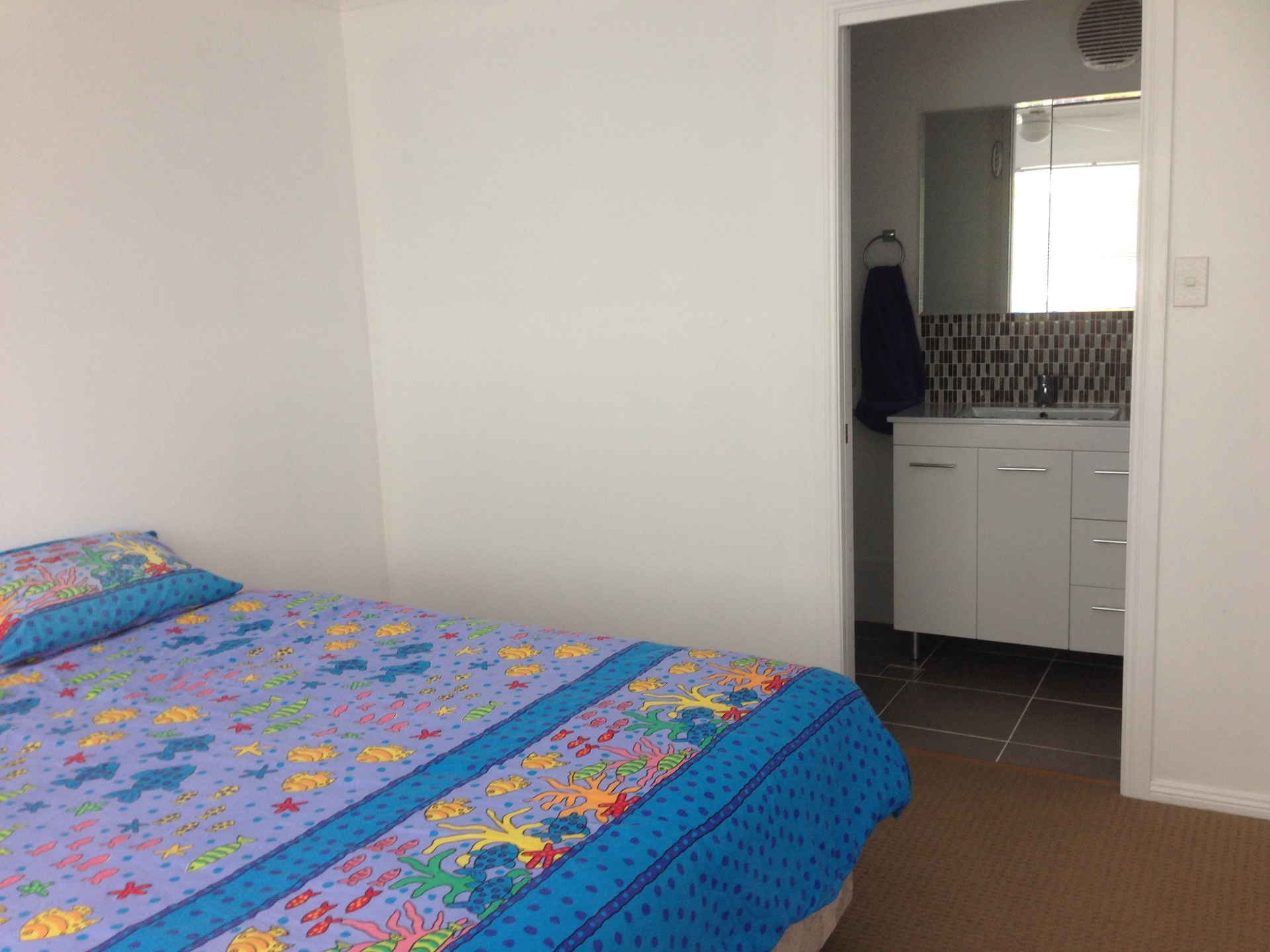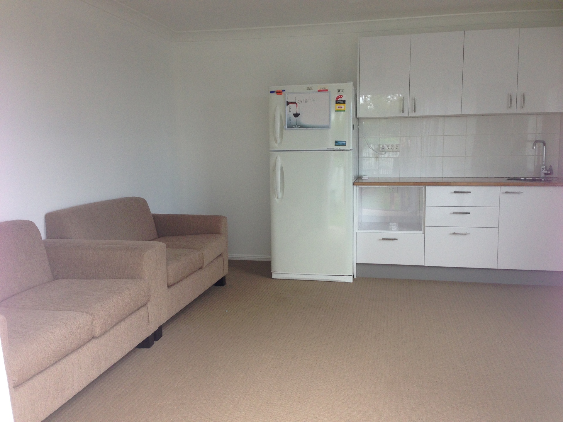 Granny flat featuring a kitchenette, living area, generously sized bedroom and ensuite.