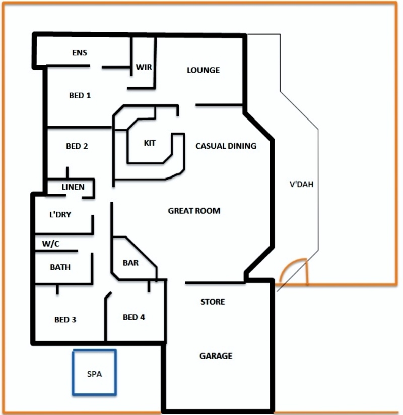 The house is based on a 4 x 2 configuration with open Kitchen, Dining and Family rooms all incorporated into a "Great Room".