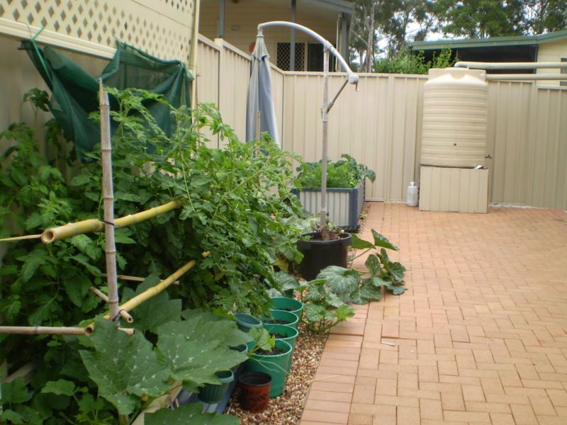 There are two inbuilt raised up garden beds approximately 2.5 m each for growing veggies and a fitted water tank which overflow feeds the main water catchment in the park which is then fed back to the house once filtered. At this time tenants do not pay for water.