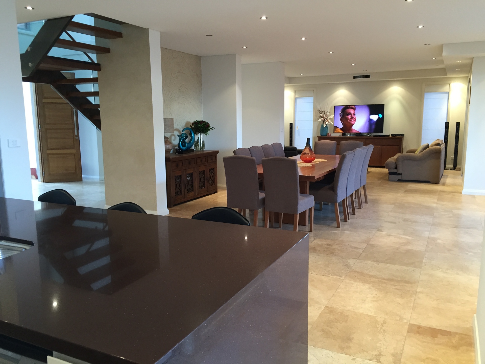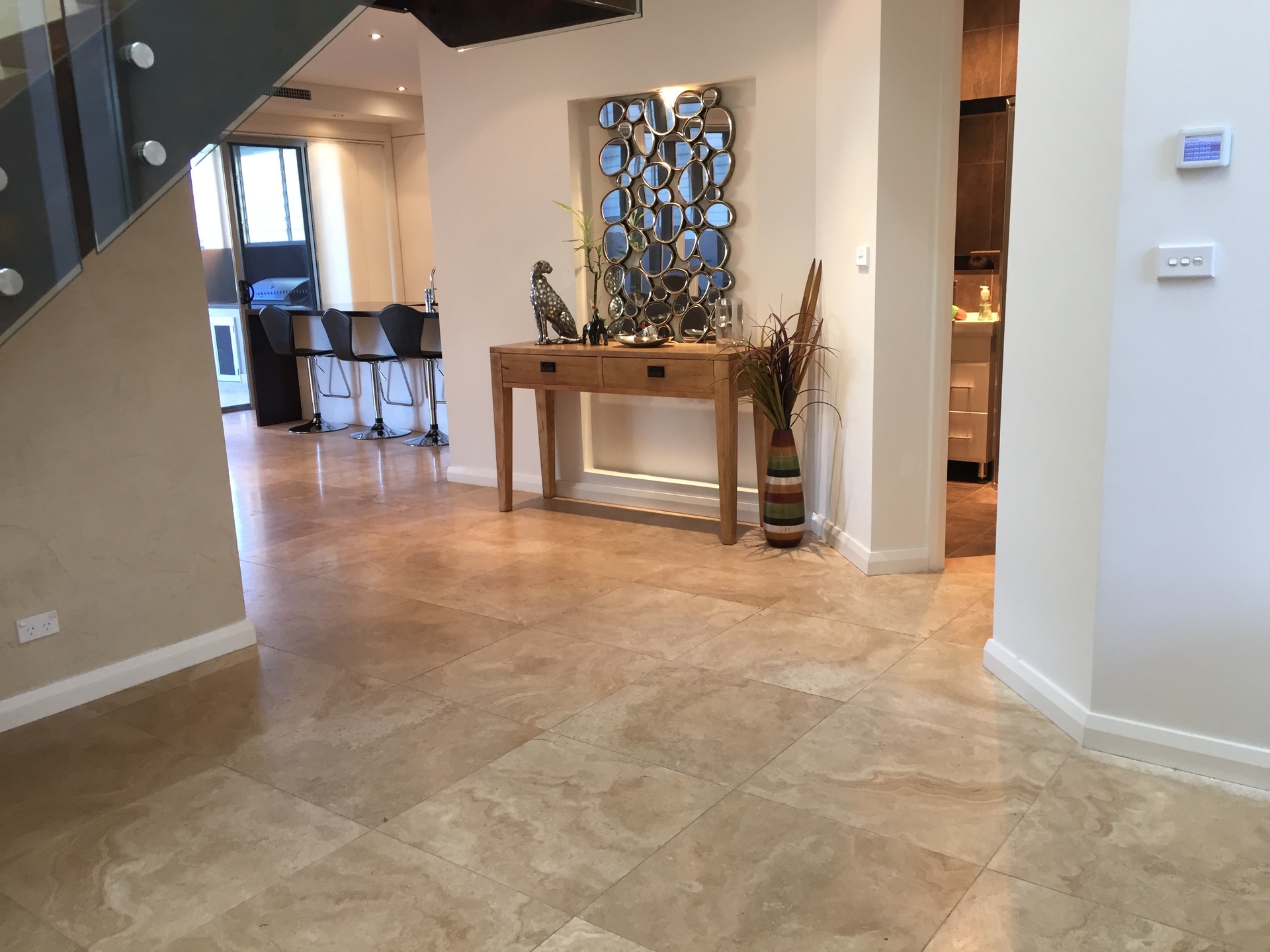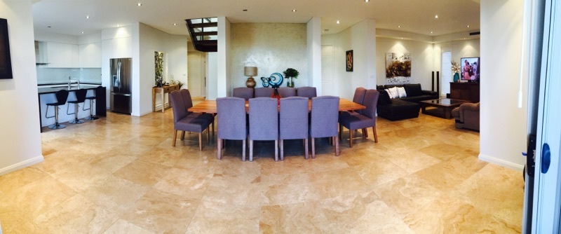 • Easy maintenance Travertine Stone tiles throughout bottom floor.