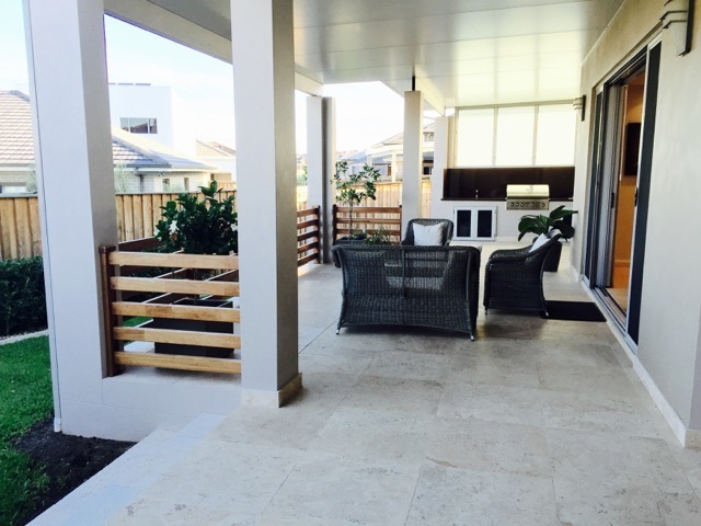 • Outdoor covered entertainment patio tiled with built in BBQ area.