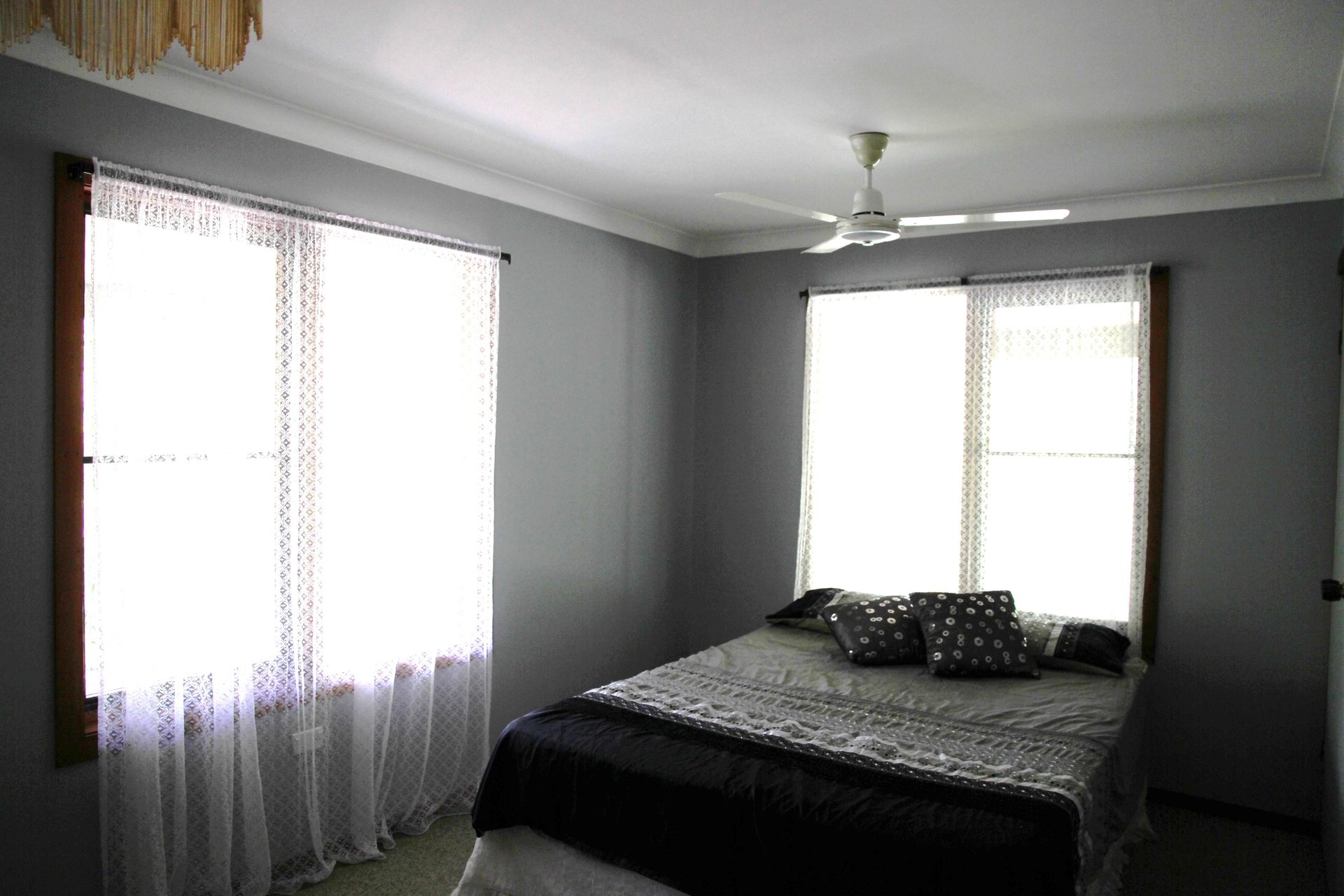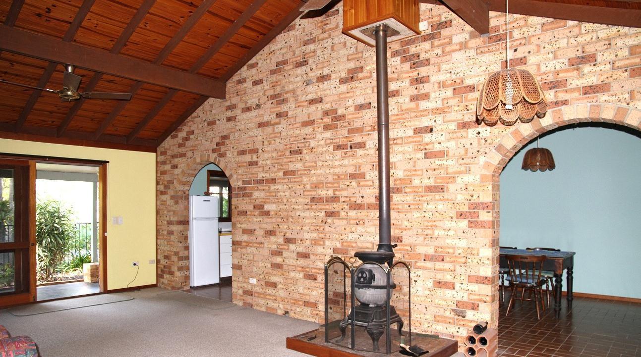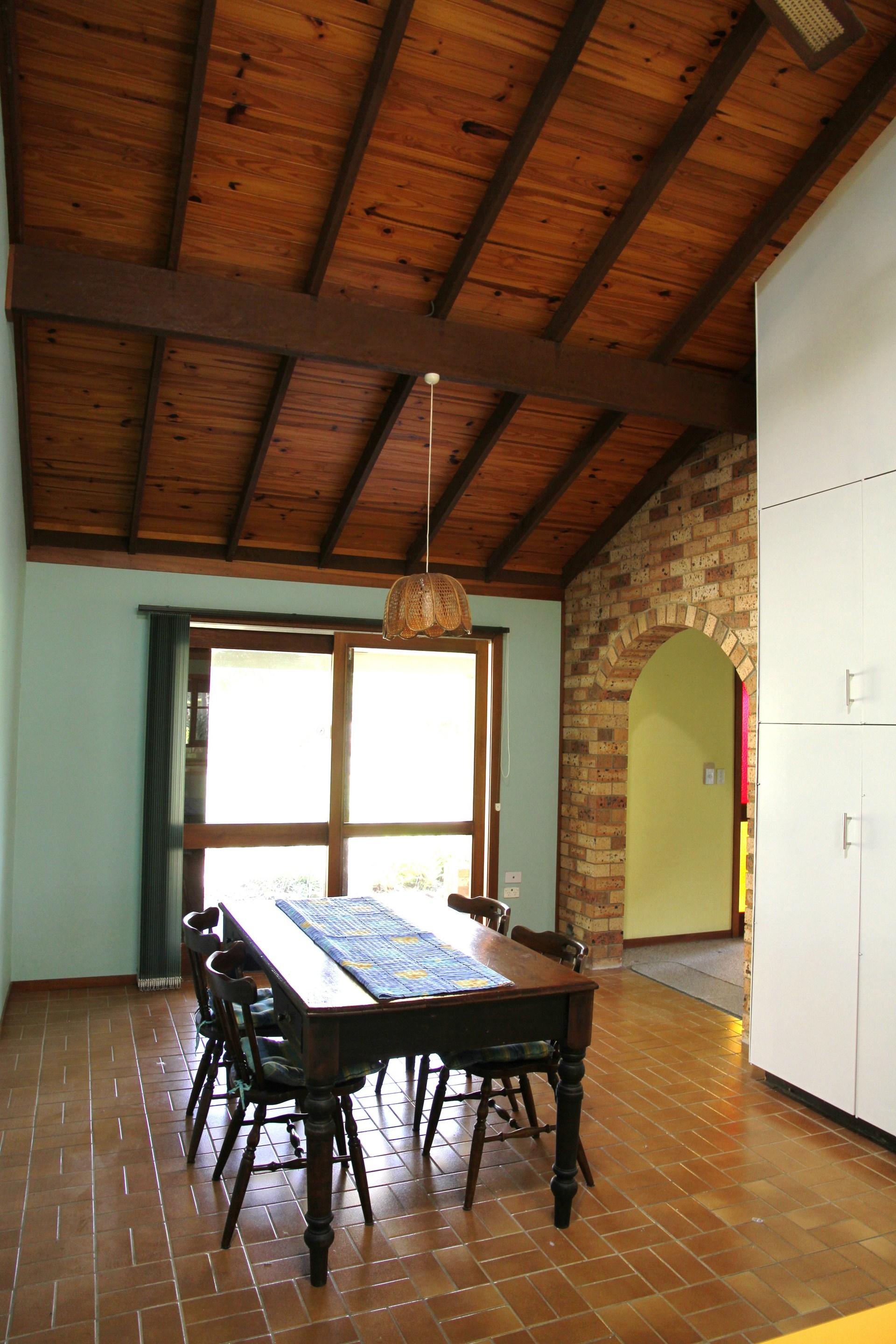 4 bedroom house with raked cathedral ceilings in lounge, kitchen and dining area. Exposed brick wall in lounge room. Good sized bedrooms all with large built-ins and ceiling fans. Cedar windows and doors throughout. Large laundry with toilet.