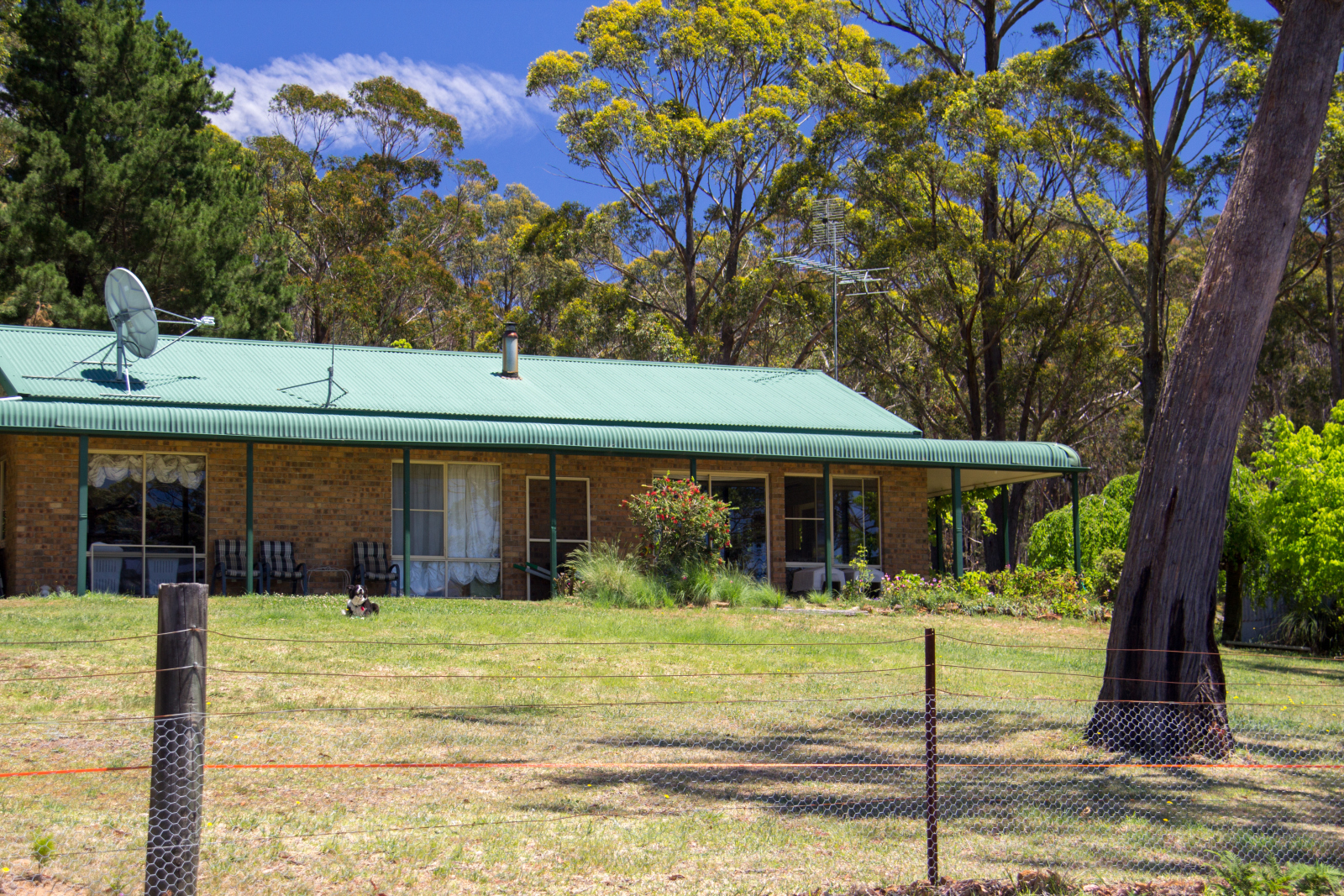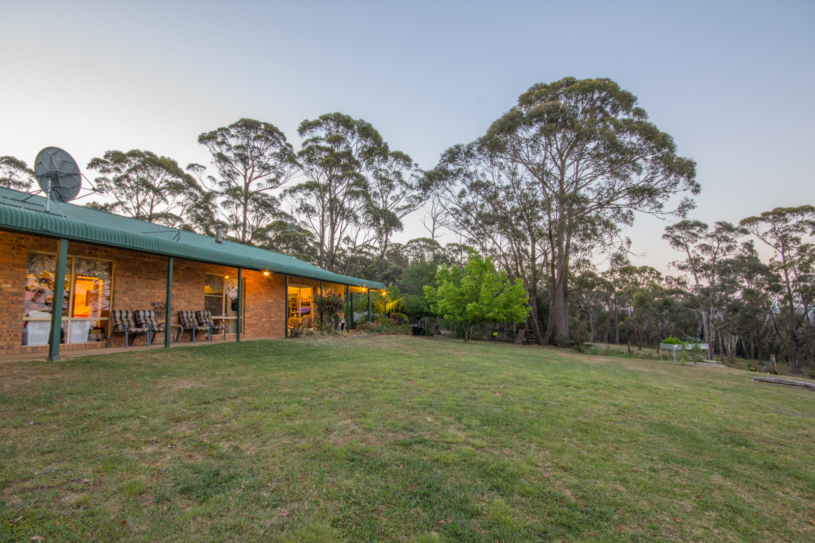 The modern three bedroom brick veneer home is surrounded by a bull-nose verandah and has lovely timber features throughout. Large windows bring the stunning view right into the living rooms and bedrooms. The home features a slow combustion wood heater, new reverse cycle split system inverter air conditioner, new gas stove, new gas hot water system and plenty of storage areas in the large linen cupboard. The home features a steel frame and trusses and a colourbond roof. A massive 100,000 litre rainwater tank supplies ample water. The property features a small section of spring water fed “hanging swamp†with abundant aquatic life and also a small well providing clear spring water all year round.