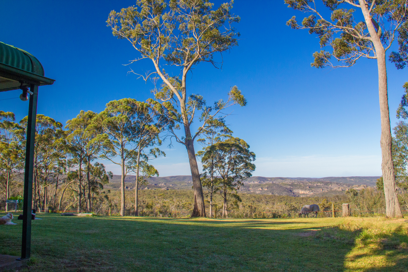 Sharing its back boundary with the Heritage Listed Blue Mountains National Park, the property features lovely open paddocks with the comfy three bedroom home situated high and offering simply stunning views. Imagine waking up and seeing adorable wallabies feeding in the paddock with mist slowly rising from rugged valleys surrounding the famous Blue Mountains sandstone rock formations and pagodas. "It's like your own private Three Sisters" has been remarked several times. Direct access to walking trails in the Wollongambe Wilderness is available right from the property's back gates. The property extends downhill to the National Park boundary, meaning the view is yours forever and can never be built out or screened.