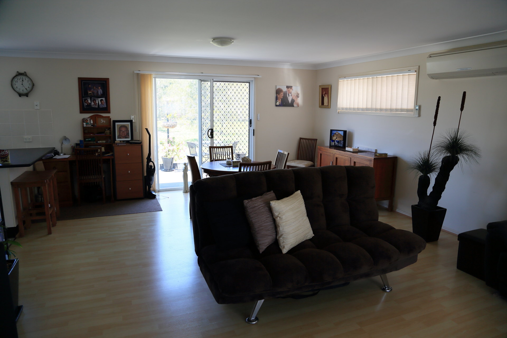This immaculate 2 bedroom home is light and airy boasting an outdoor living deck running the full length of the house over looking adjacent rural property. Recently refurbished; new carpets, aircon, large open plan living area, front verandah, large garage/ multi-purpose room with ample storage. Fully fenced with plenty of room for your fur-baby and garden shed for extra storage.