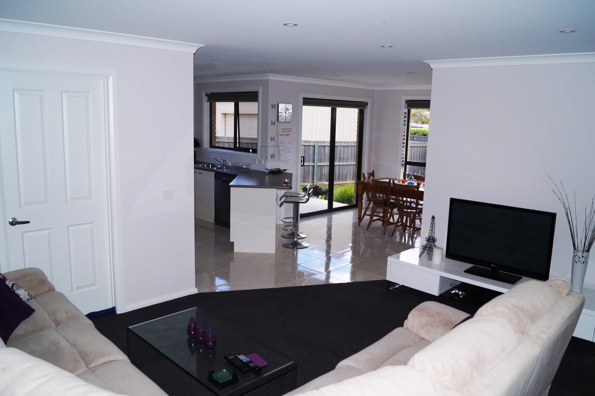 Open plan lounge/dining/kitchen with access to undercover deck area