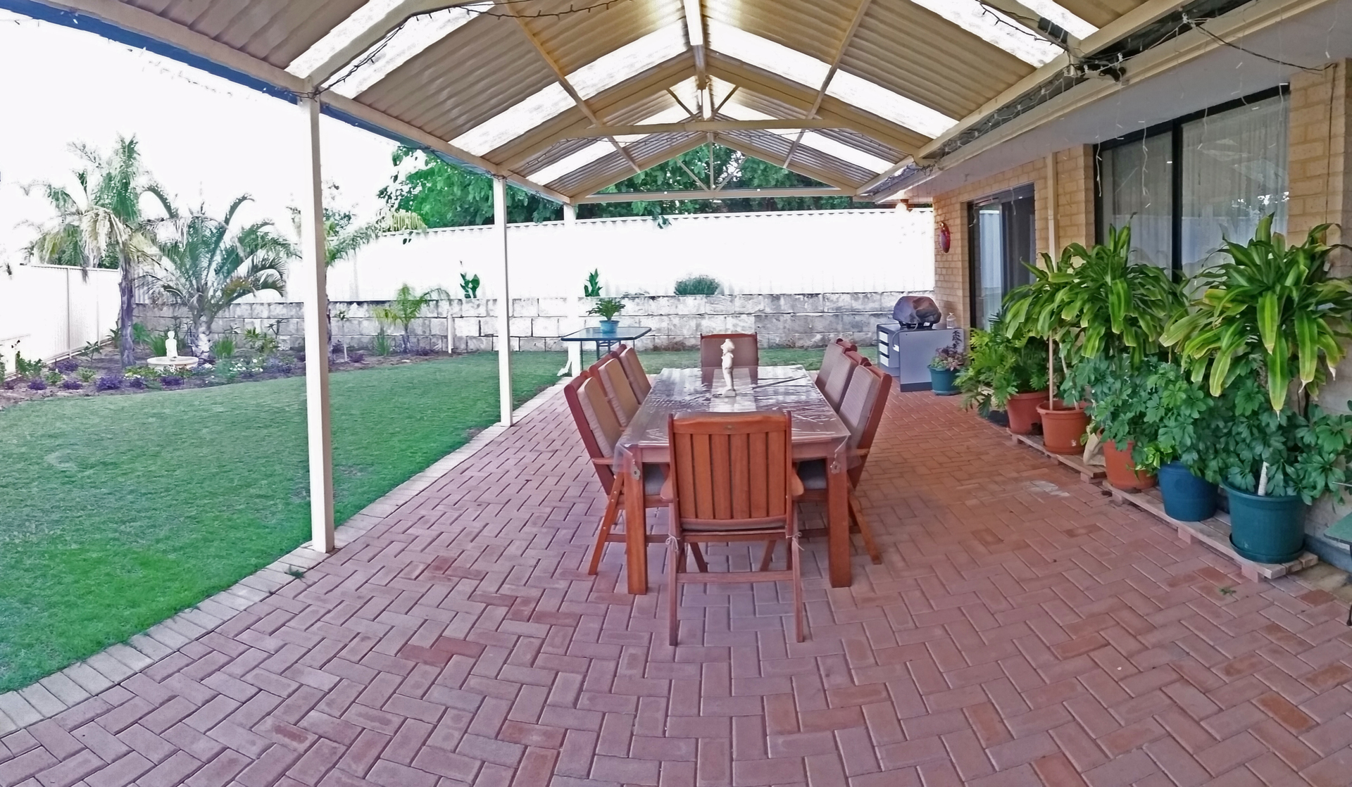 • Outdoor entertaining area – large 10m x 4m patio with gabled roof & plenty of lighting