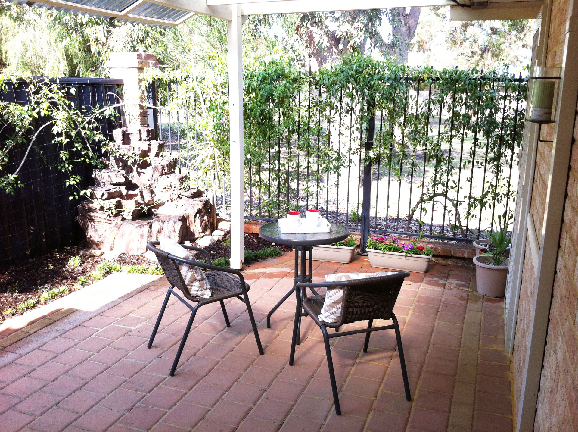 Sit in the rear courtyard and enjoy your private view of the parks.