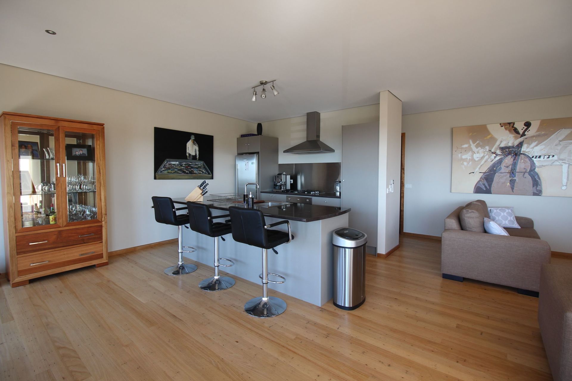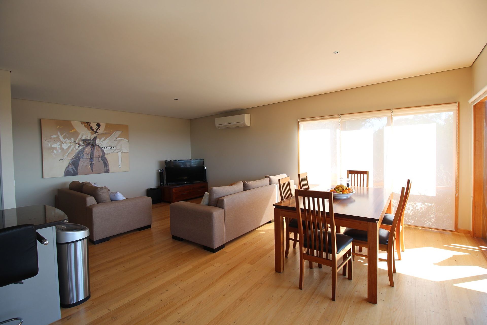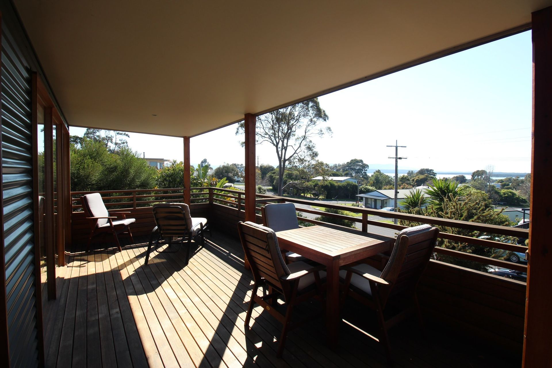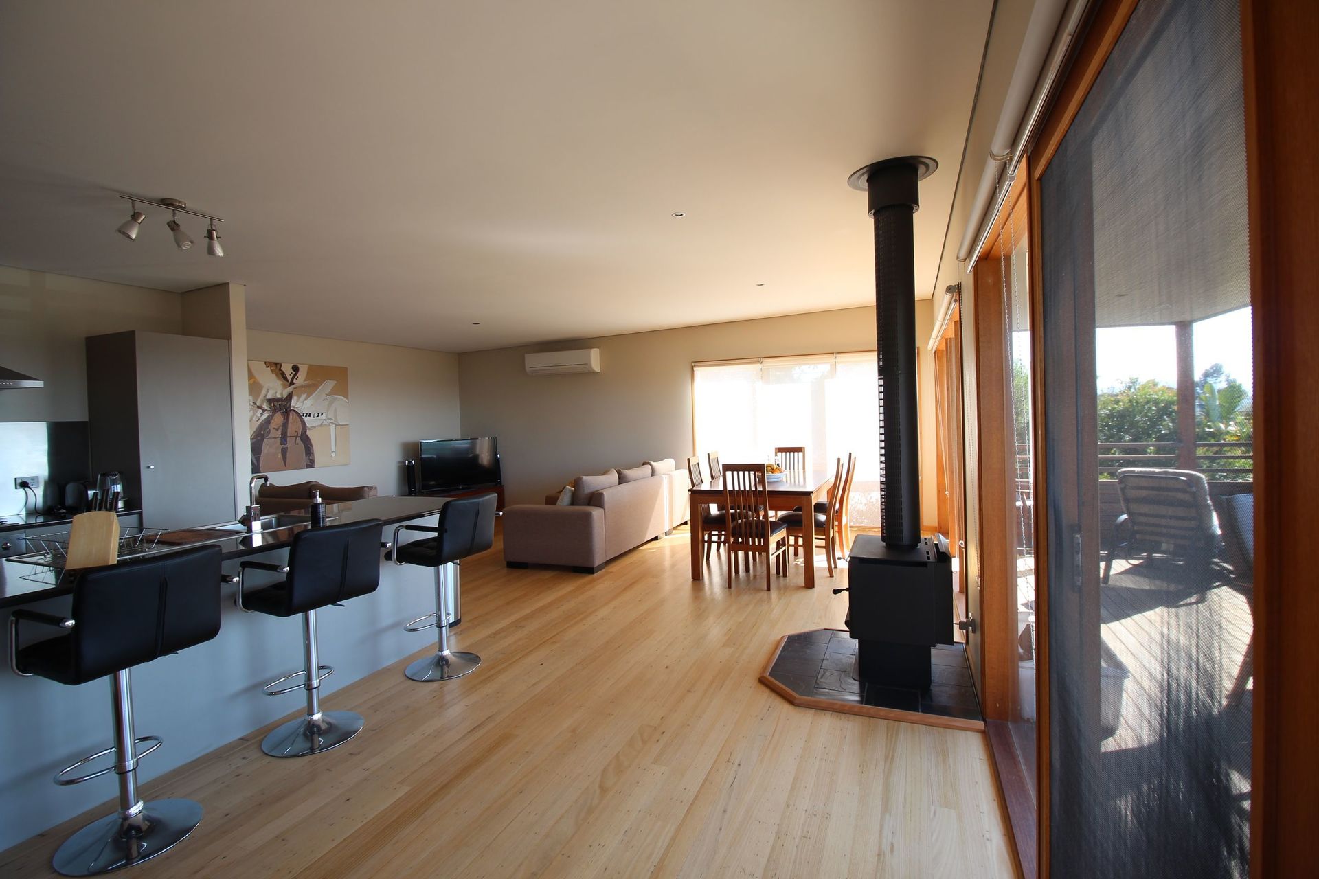 Modern two bedroom home built in 2012. This spacious open plan design with timber flooring has a wood heater, reverse cycle air conditioner and is wired for satellite television. There are large windows which fill the house with light and warmth. The decking provides extensive views of the bottom lake, ocean, entrance and the Howe Ranges.