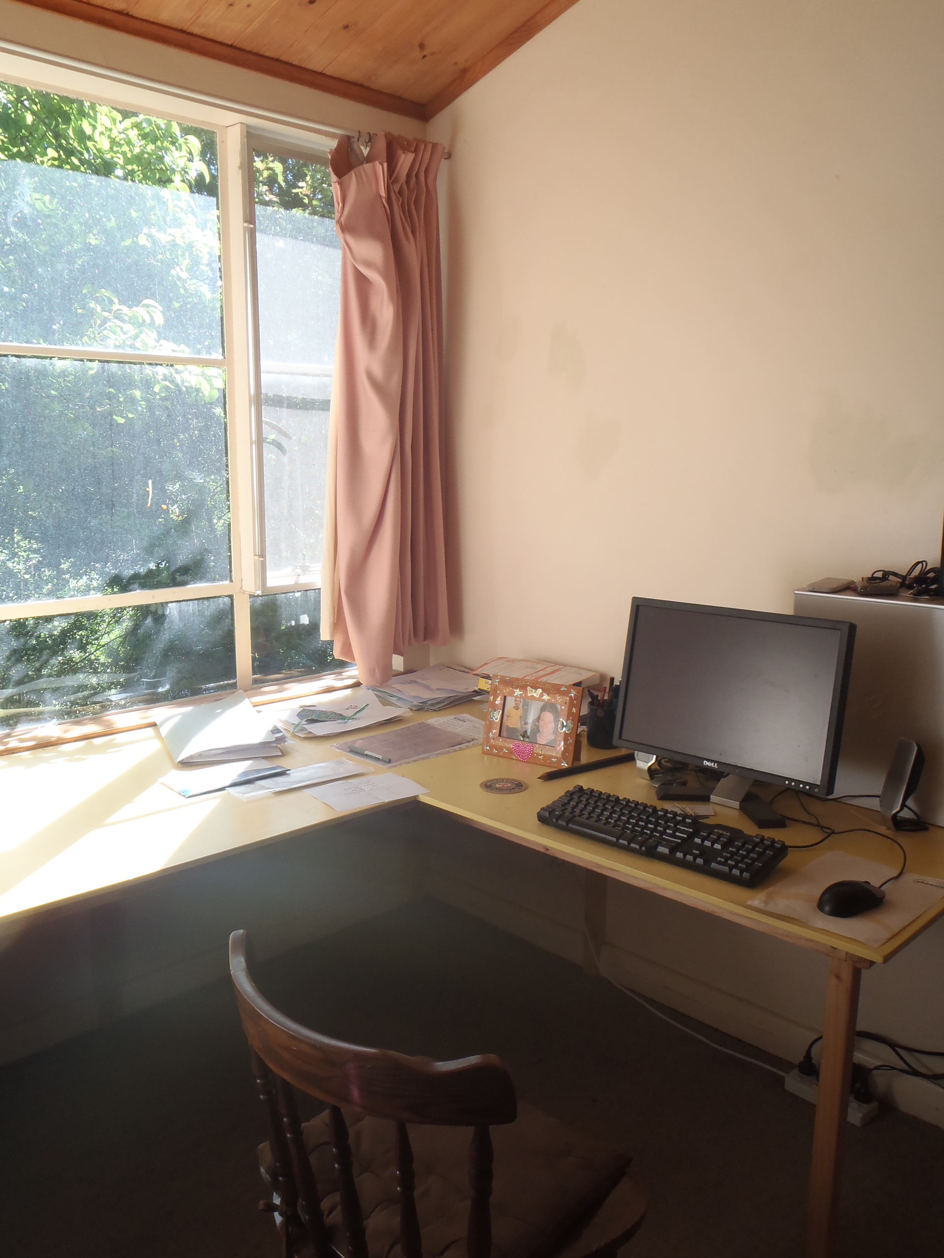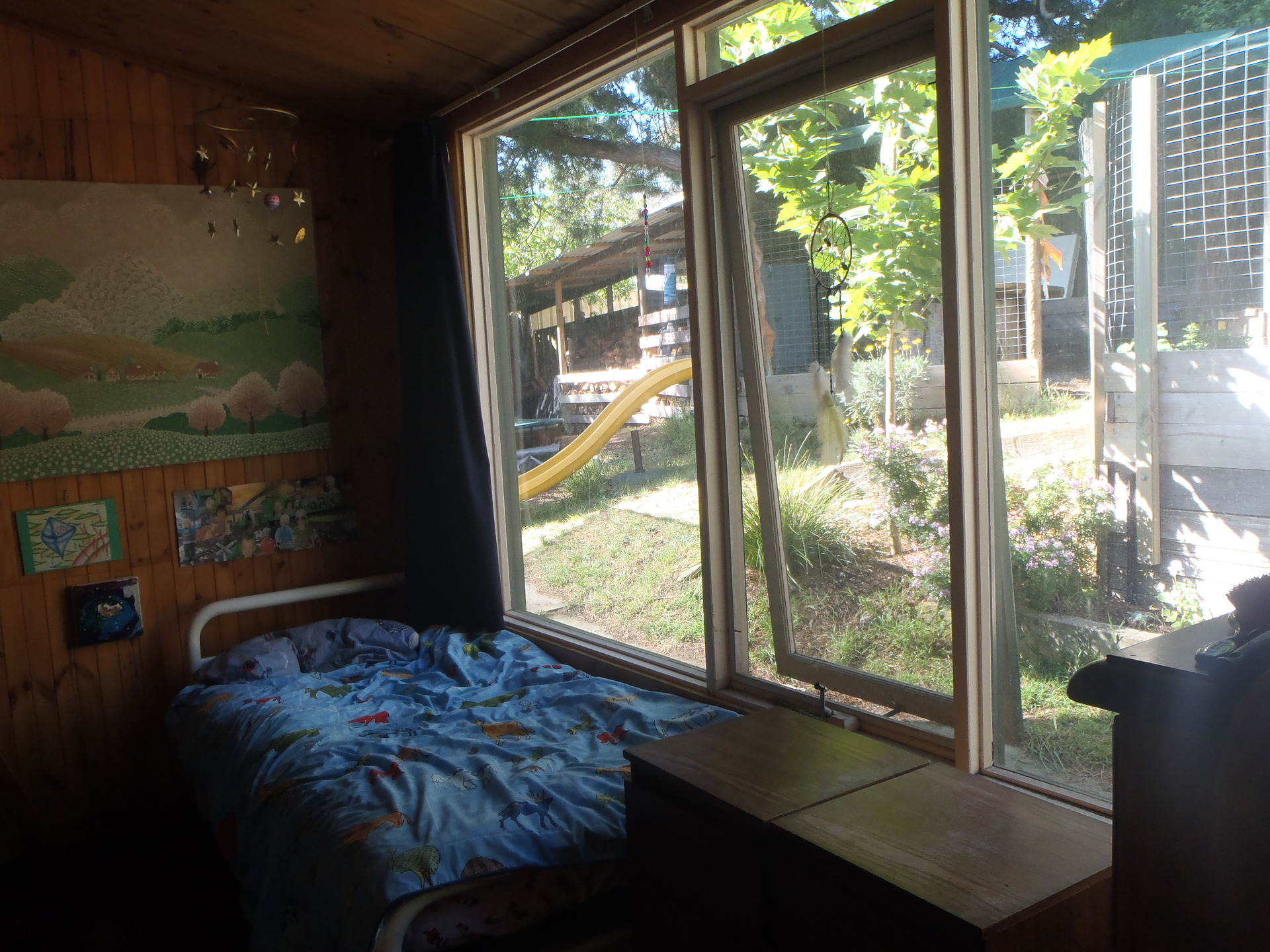 The interior of exposed timber gives the house a warm, natural feel. The 3 bedrooms plus study all have large windows allowing in light and greenery of the surrounding garden.