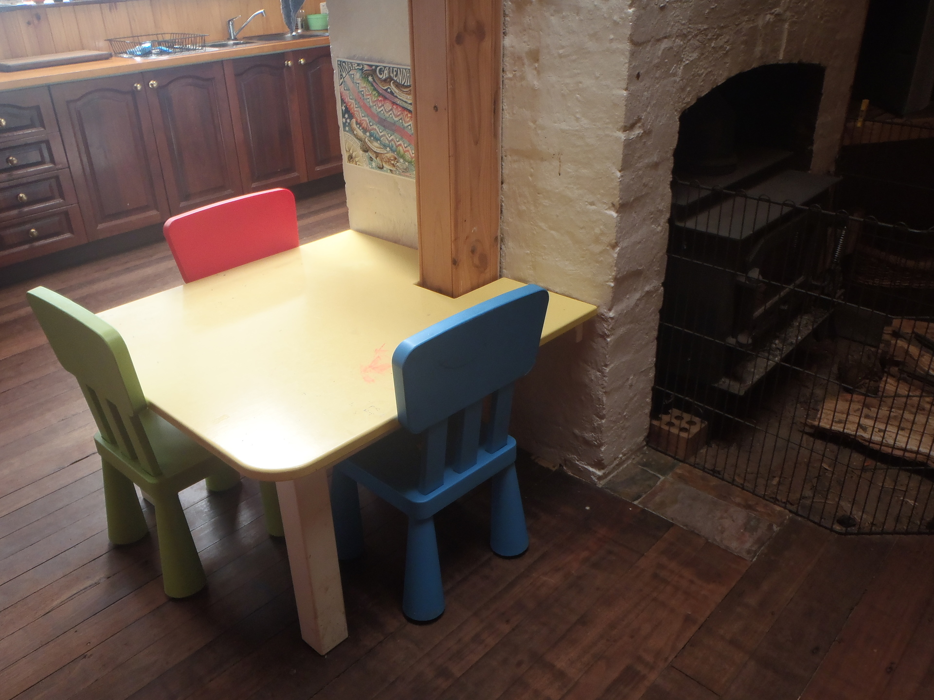 The large central living area has a slow combustion heater set in the classic original brick fireplace. Heating is provided by this heater and cooling by ceiling fan.