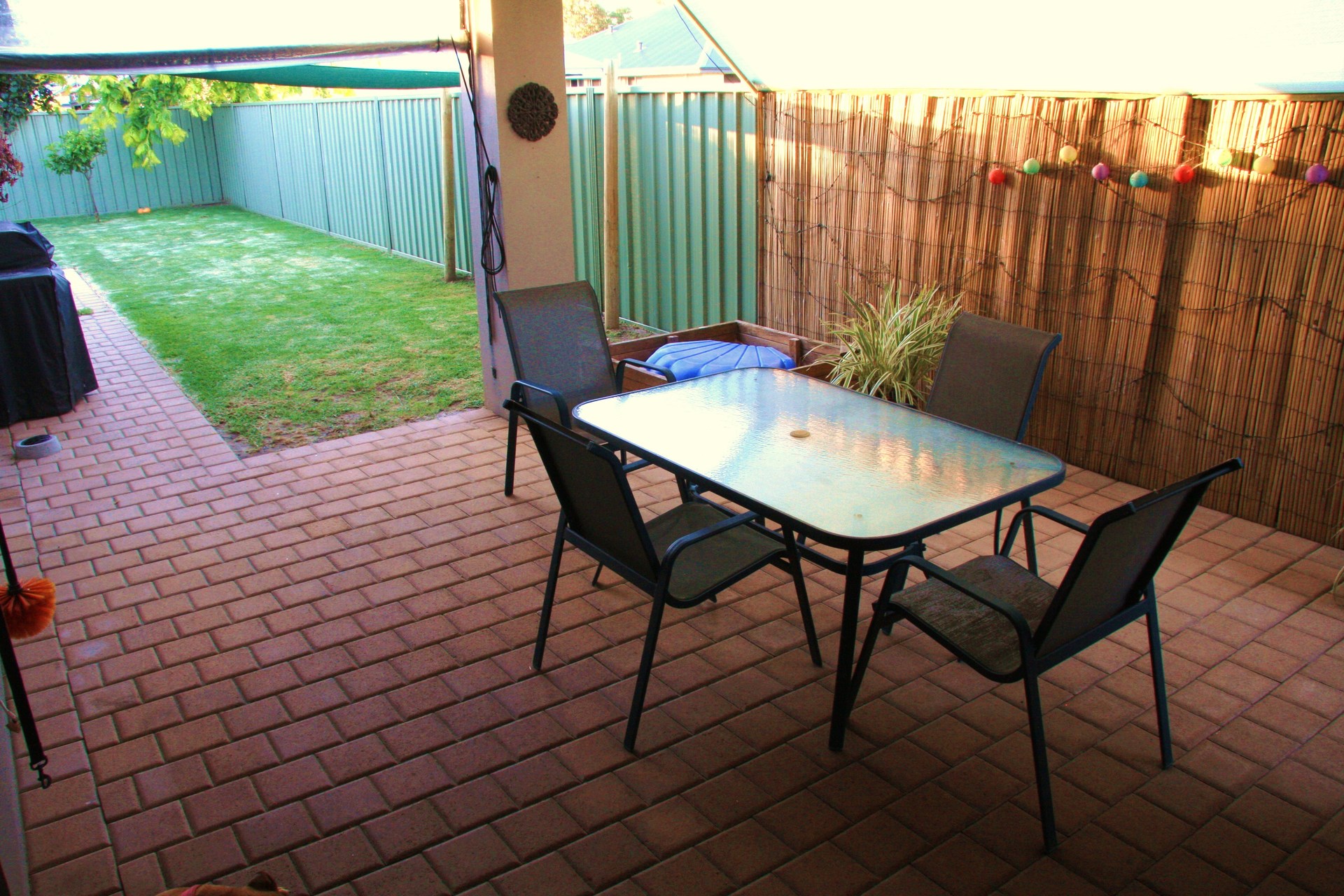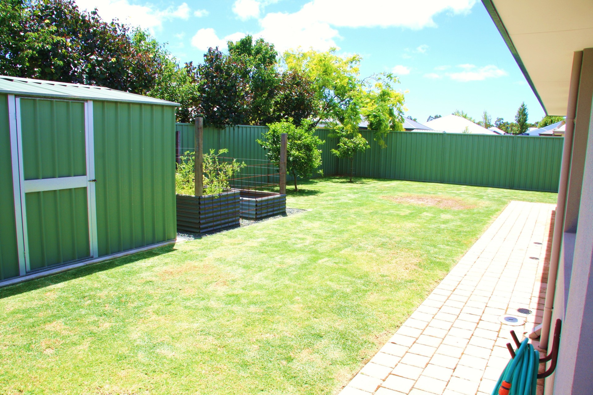 Easy care, reticulated lawns with established citrus trees, raised vegetable beds and native plants.