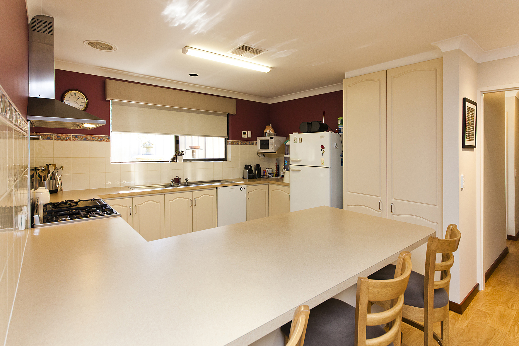 The Cook in the family will love the very generous sized kitchen with near new 900mm wide oven/hotplates and the recently renovated cupboards, all in fabulous condition. There is plenty of cupboard space and a large built in pantry. Along the front of the kitchen the cupboards double as a breakfast bar of approx. 2.5 meters long. Great for pancakes with the kids on Sunday mornings.