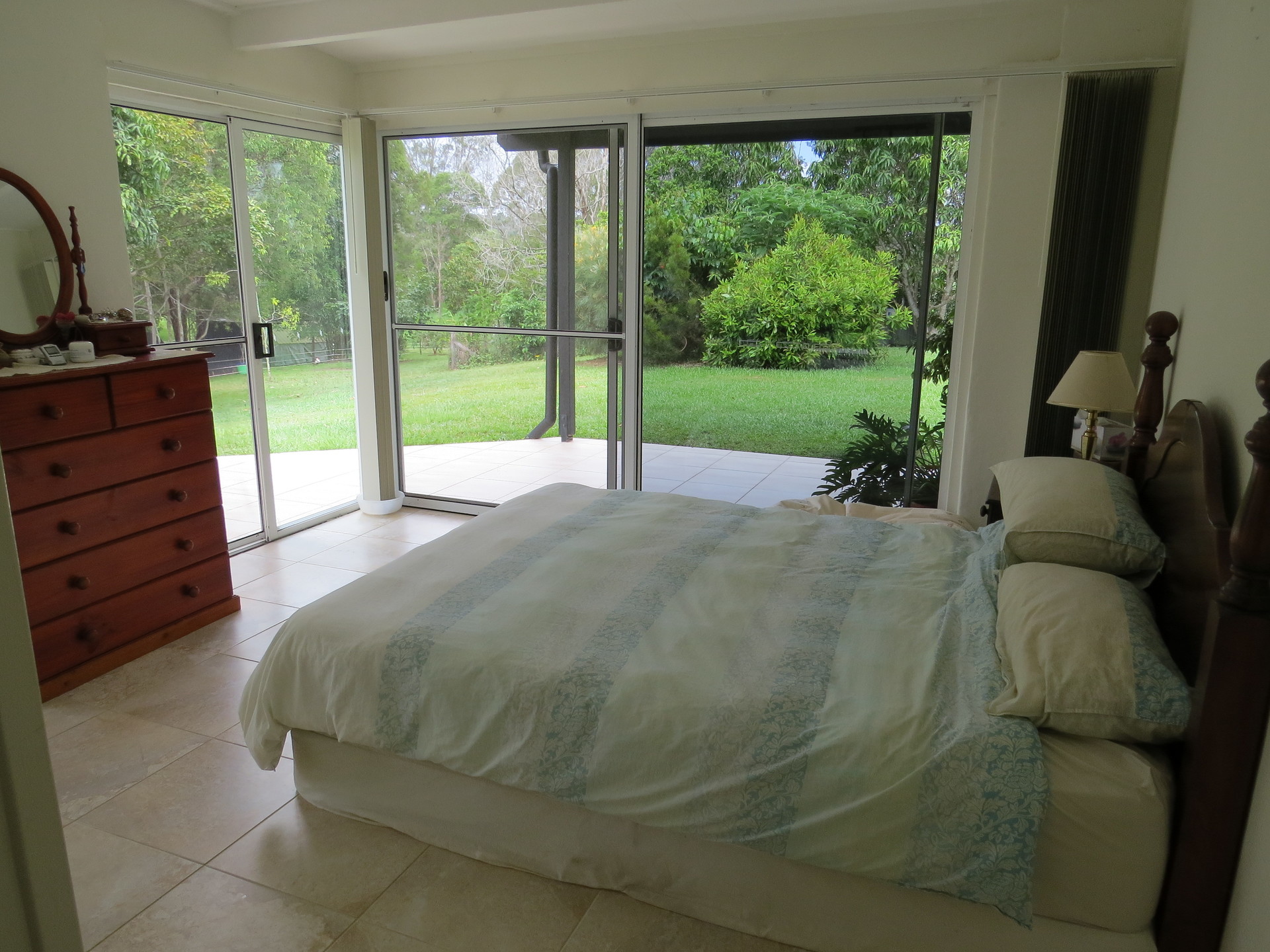 The main bedroom is large, with fantastic views across the property and dam, with a glass shower and bath that suits relaxing baths with homemade wine in hand! (Water use is of no concern â€" due to 5 rainwater tanks, plus the solar hot water system takes care of your hot water needs).