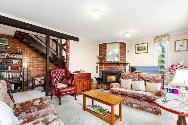 The house is two stories high with three levels and has recently been repainted on the outside. All the major rooms have a view of the river or the garden and the house is filled with light and air. The blackwood kitchen is strategically located between the dining room and the family living area. The bedrooms and lounge room are carpeted and the remaining areas have polished Tas oak floors. The house is wonderfully warm in winter with a new wood heater and the convenience of a ducted heating system. Temperature control is further enhanced with see through UV blinds, quality curtains and wooden window shutters.