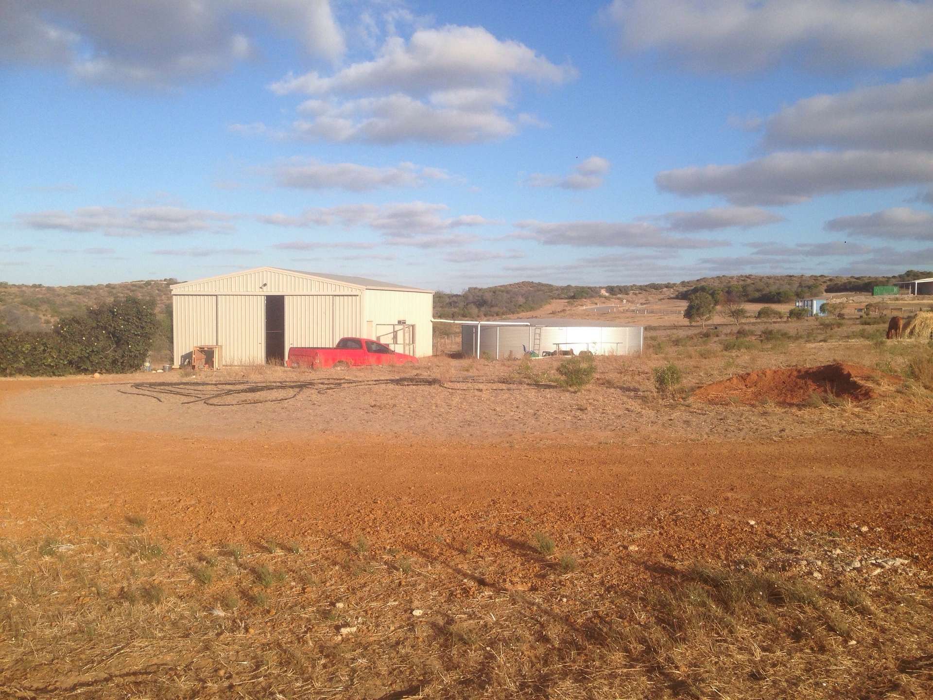 Boundary has trees growing for privacy and water points on every side. Shed is plumbed up to mains but there is a huge 220'000L rain water tank also.