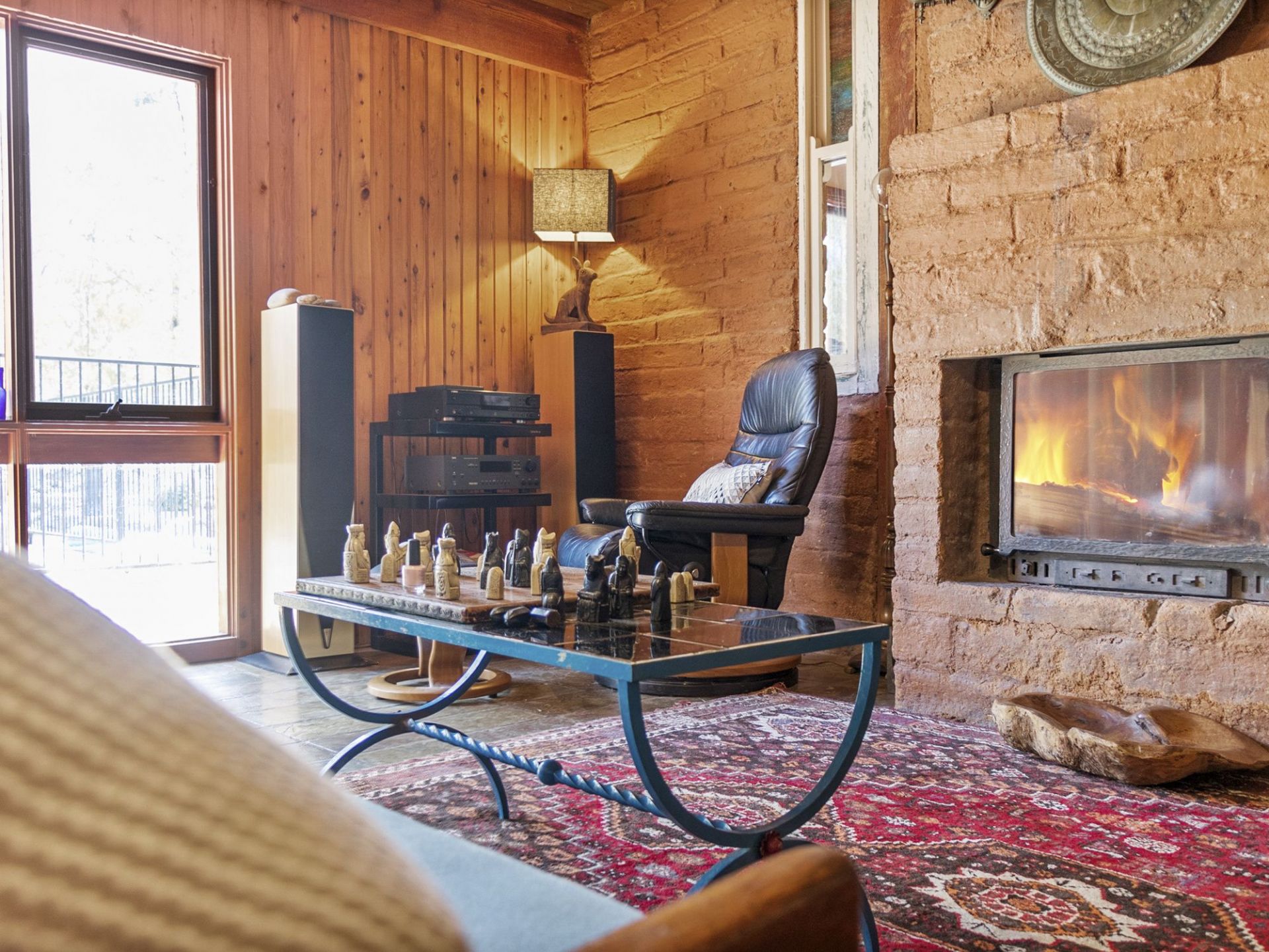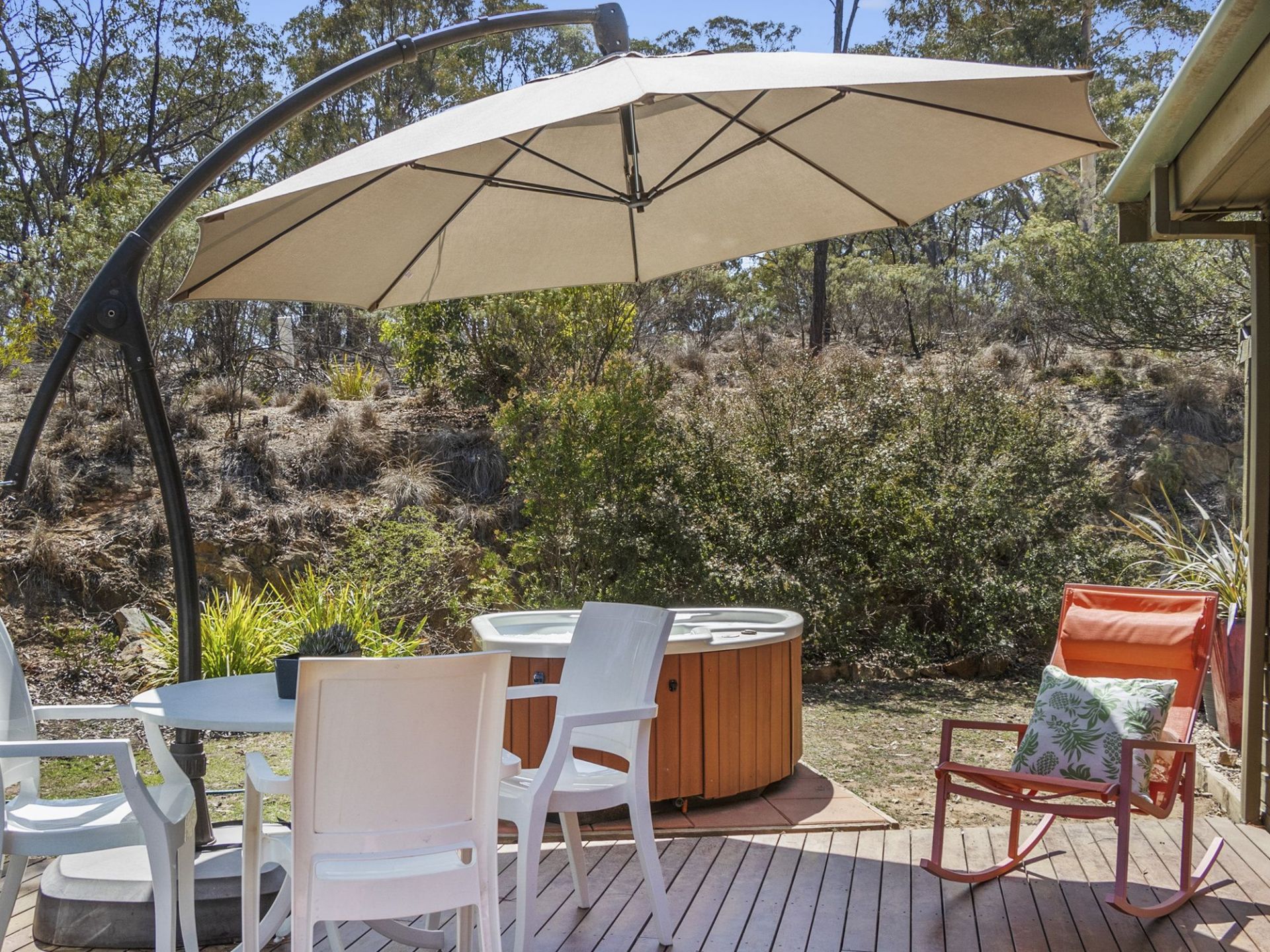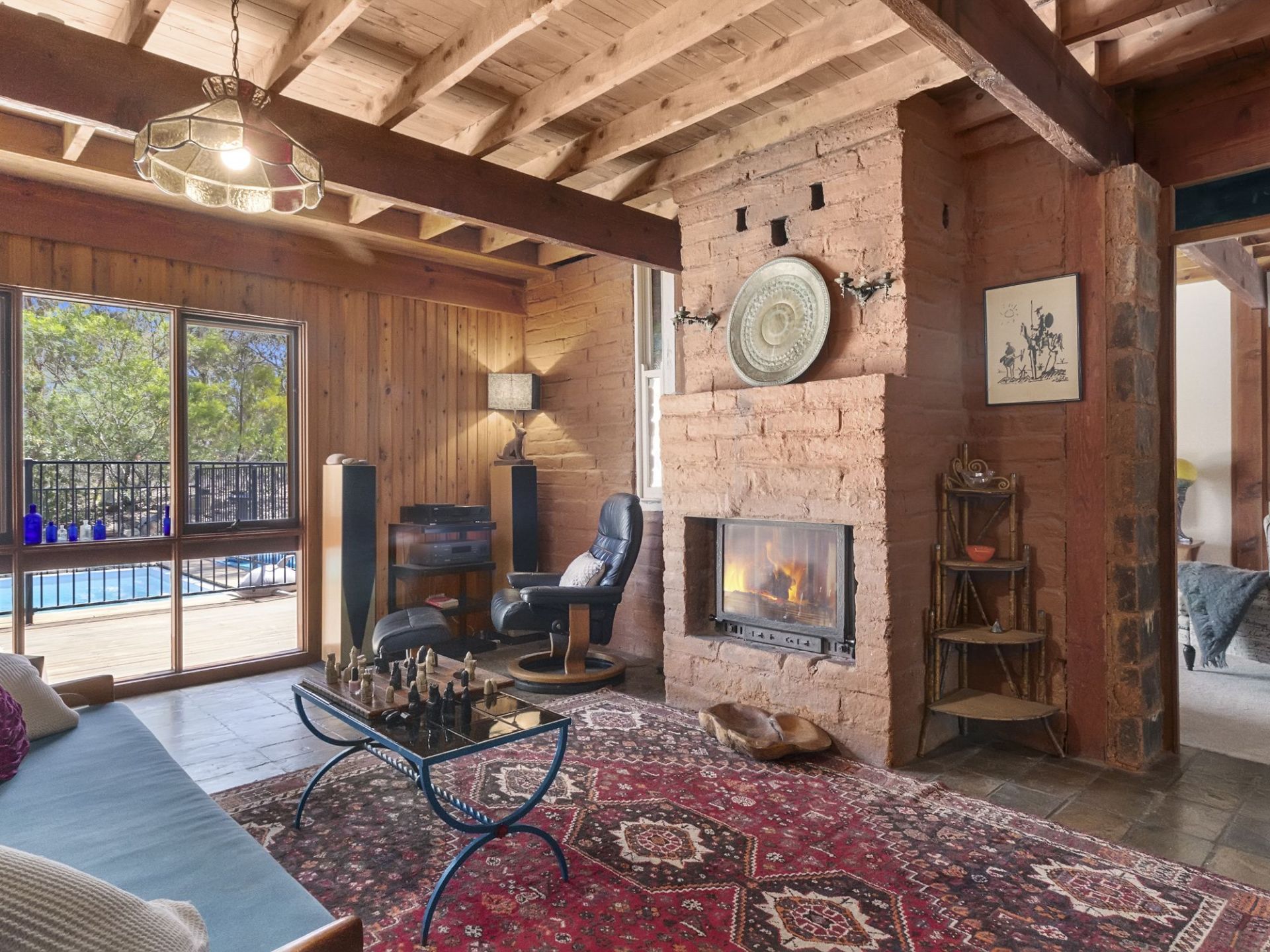 North facing and solar passive, the house has internal mud brick walls to store heat over the winter months and is supported by a slow combustion wood burning heater that has the capacity to convert to an open fireplace. A great feature to relax by.