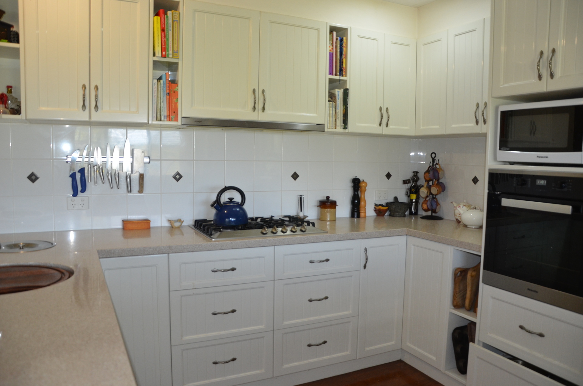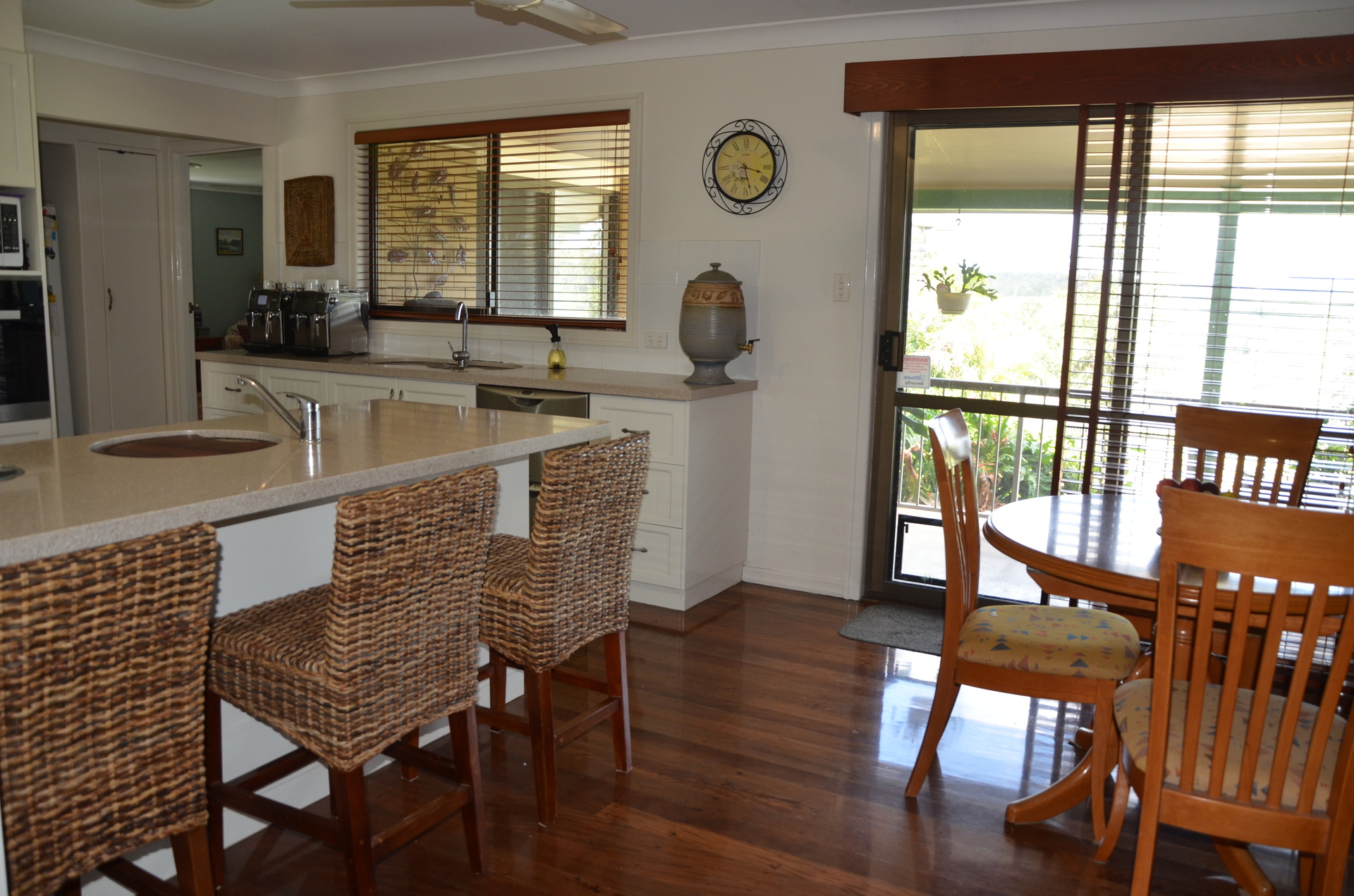 Consisting of 3-4 bedrooms equipped with a beautiful Caesar stone kitchen with Meile appliances, ducted air, polished hardwood floors throughout, huge entertainers deck, pool, spa, home office, security screened, roller shutters on some rooms, double carport (Tiled) with electric roller doors.