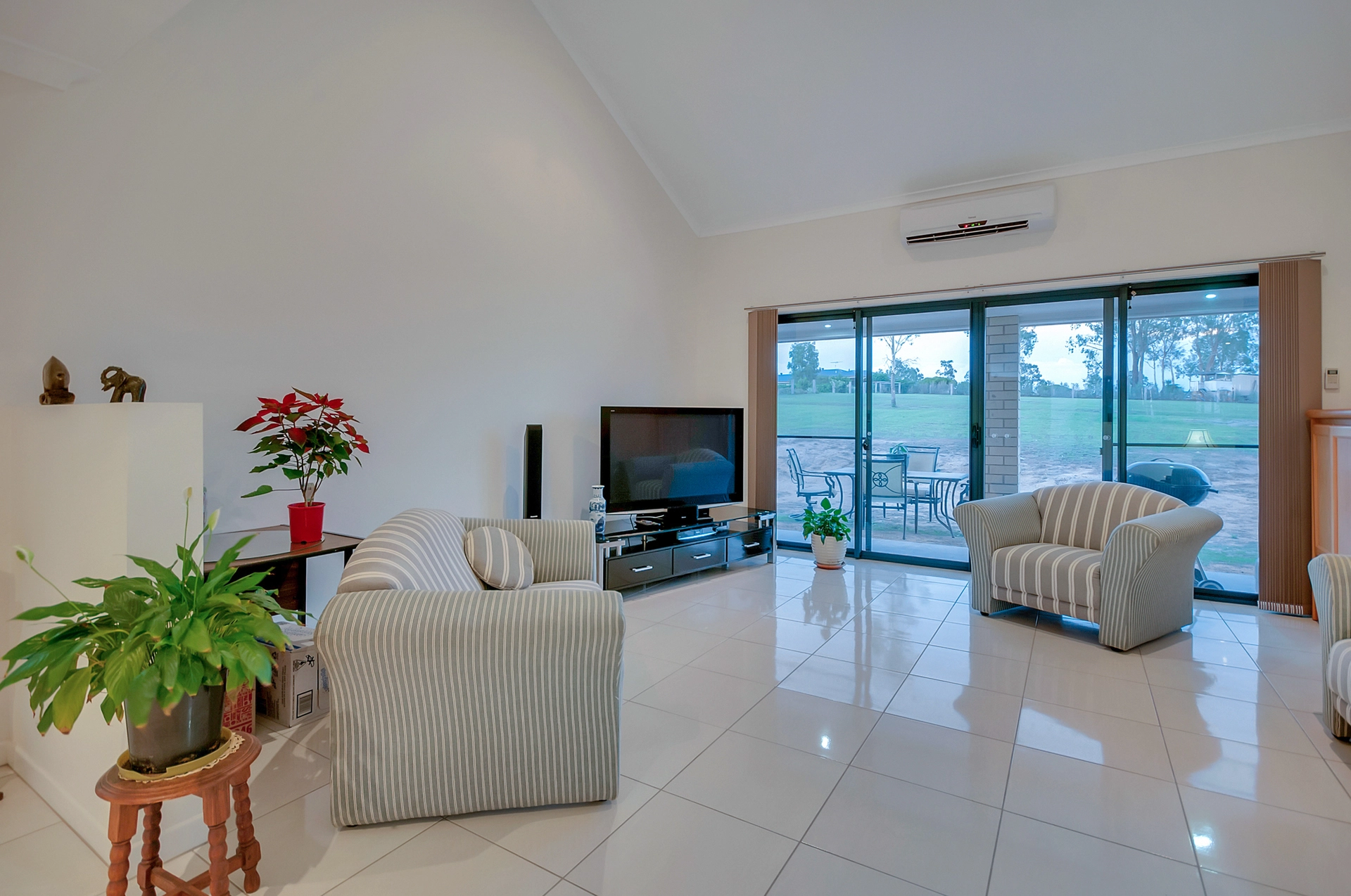 Aircon to main bedroom, kitchen and lounge; Electrical safety switch; Solar panels; 2X5000Lt Water tanks; smoke alarms; Long concrete driveway .