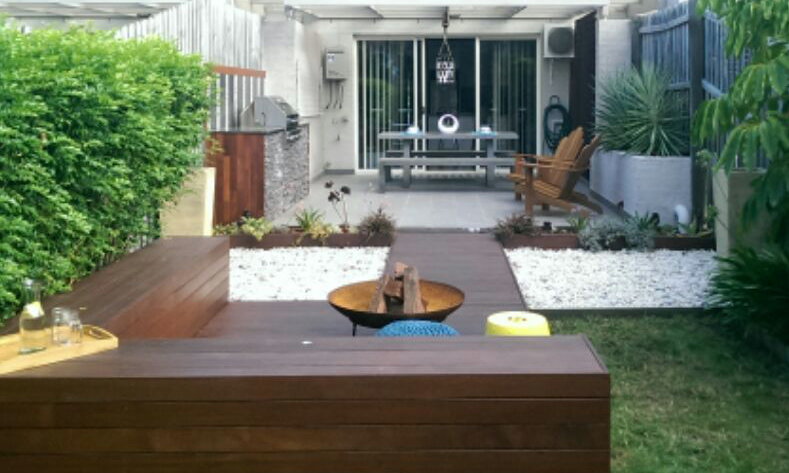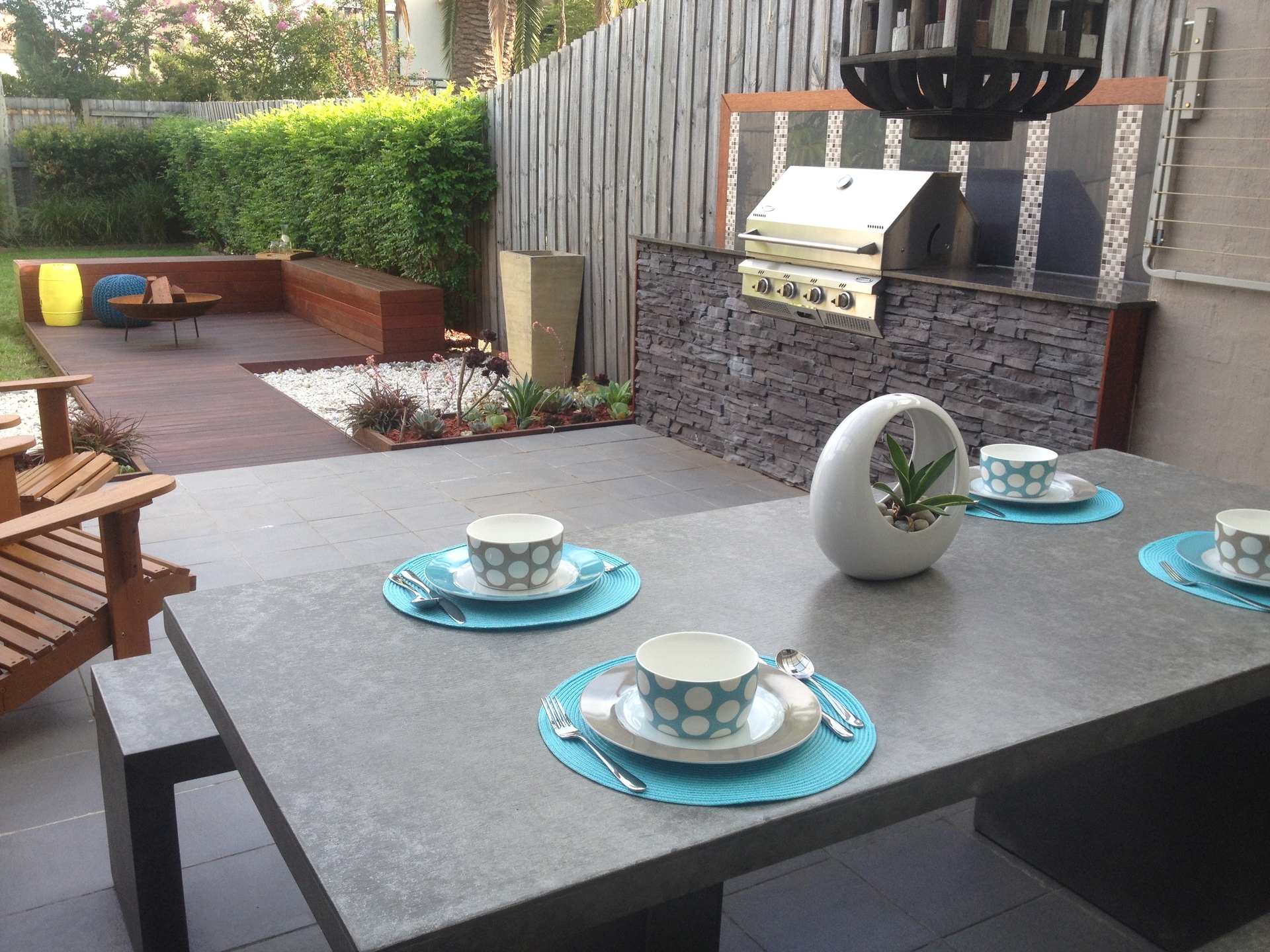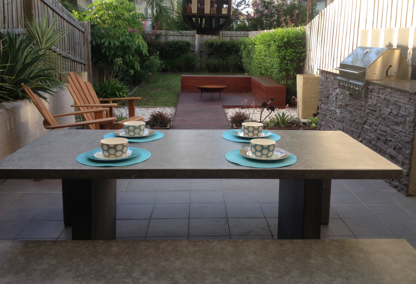 The open lounge/dining, ideal for entertaining, flows out to a covered alfresco outdoor entertaining area that has a builtin BBQ, timber benches, a firepit and a thriving native garden.