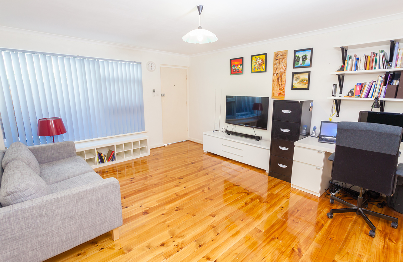 - A spacious living area that flows through to the kitchen