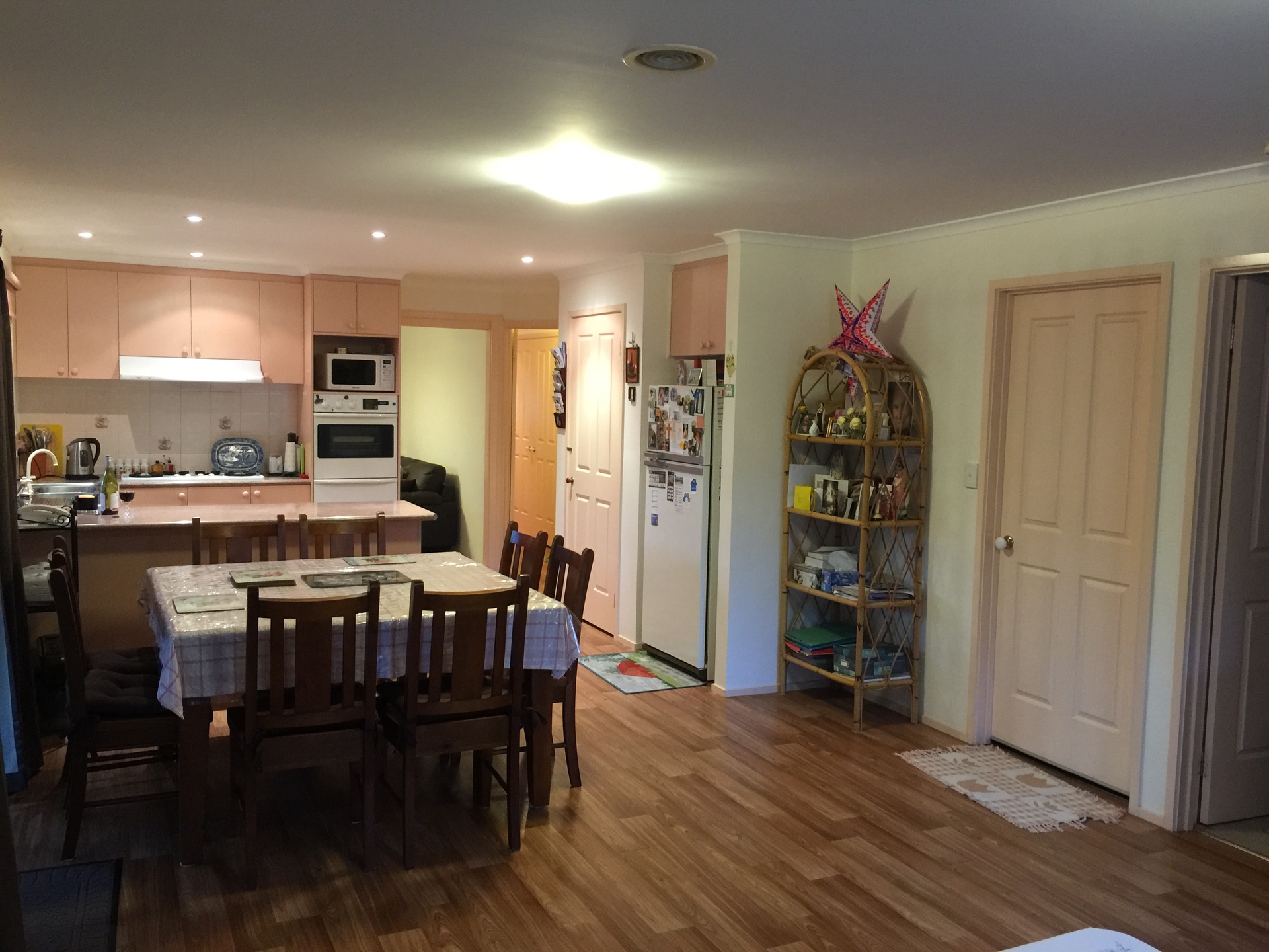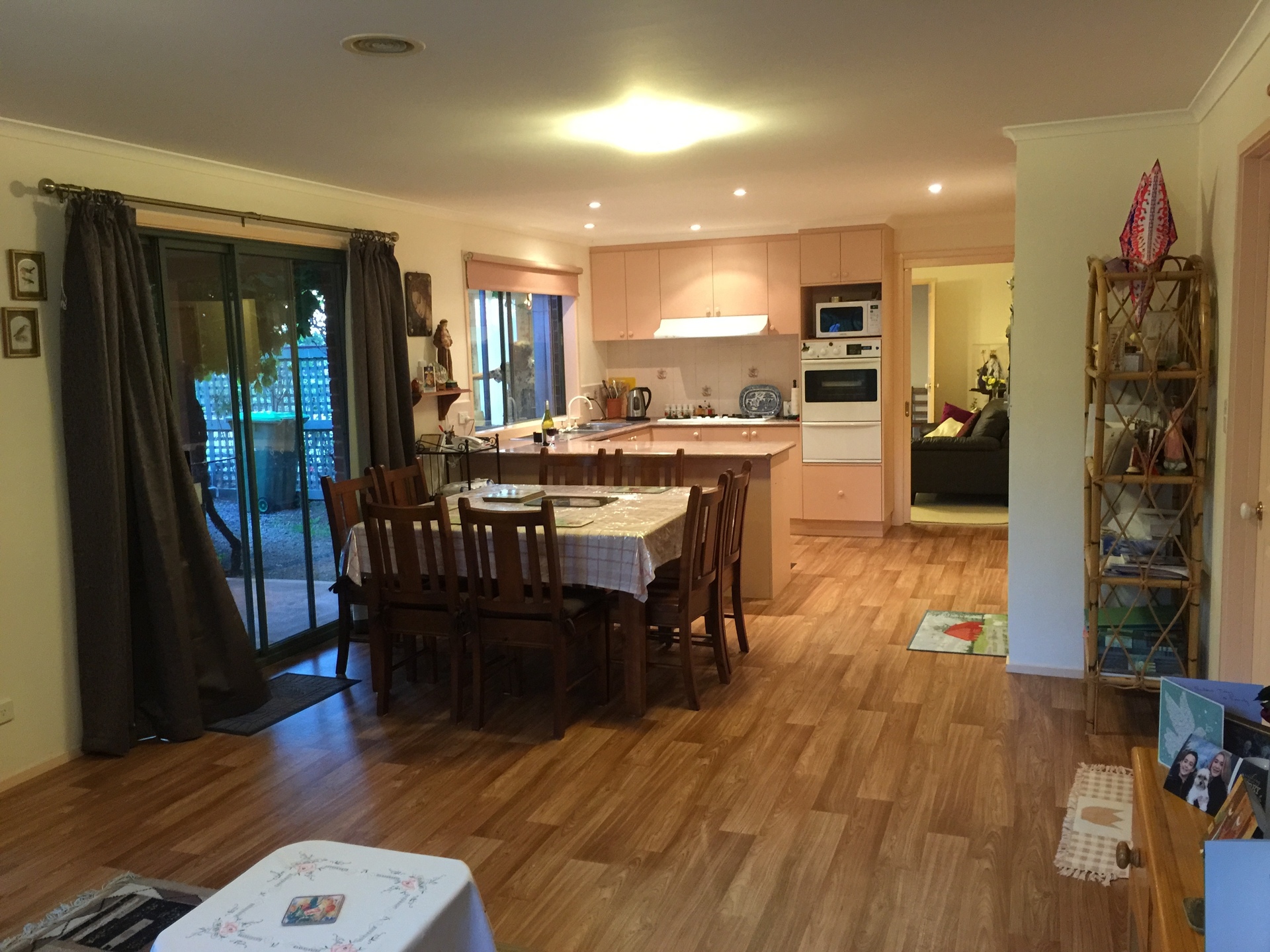 The kitchen with, large breakfast bar, adjoins the spacious meals/family area, which looks out onto the undercover patio area with built in gas BBQ.