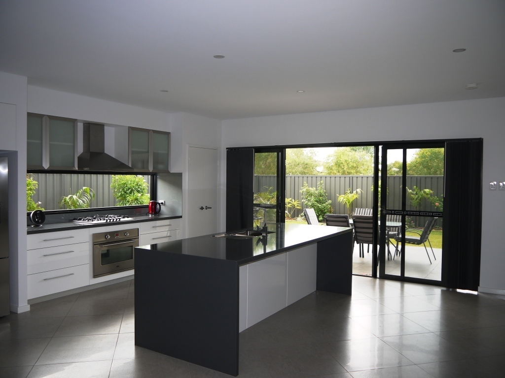 KITCHEN- the kitchen is a dream. Equipped with Ilve oven, Bosch dishwasher and cook top, charcoal granite island bench and a splash back that is a window view to the garden. Entertaining is easy on the patio with a bar-b-que, or serve straight from the kitchen through the double glass doors.