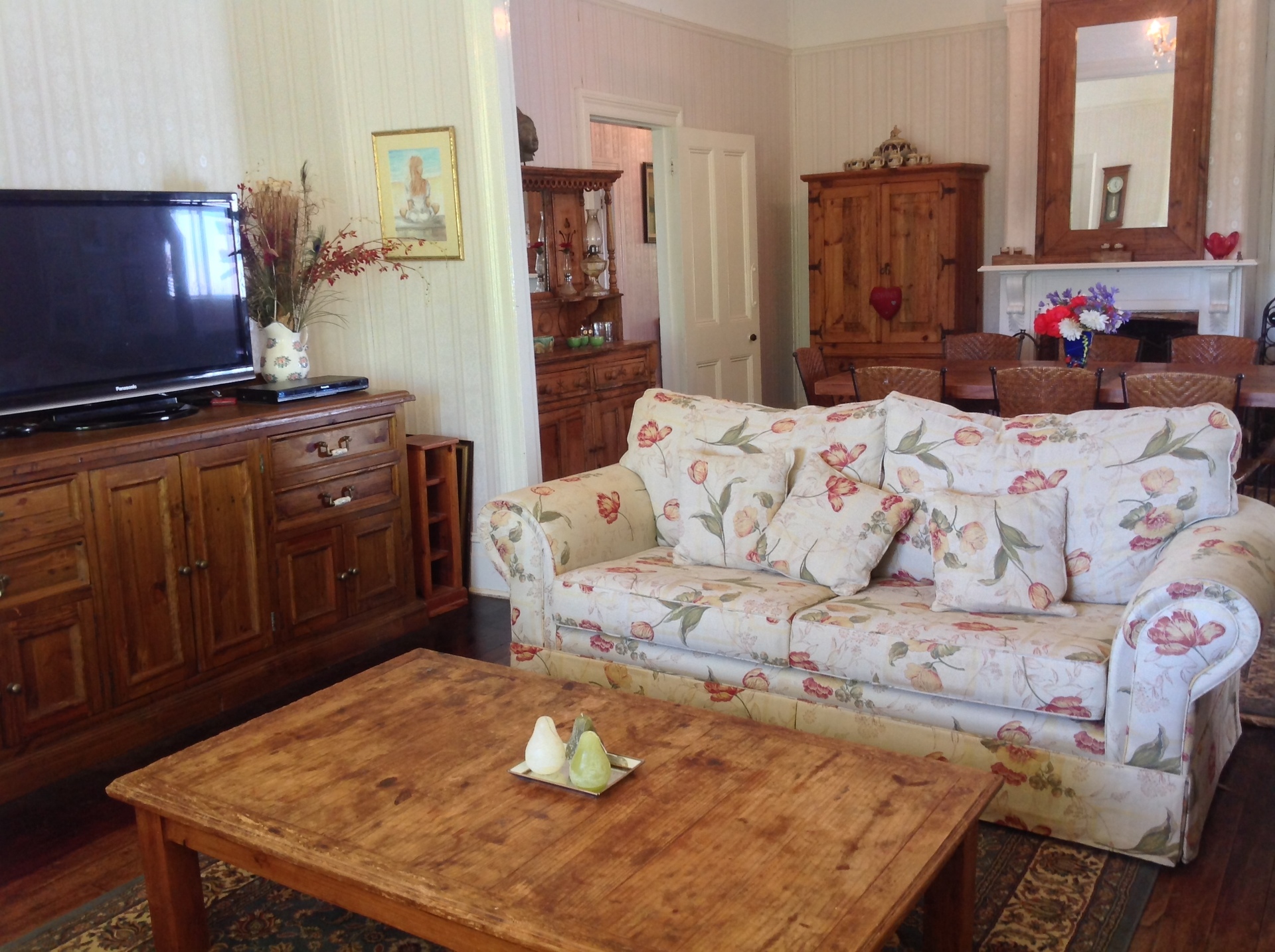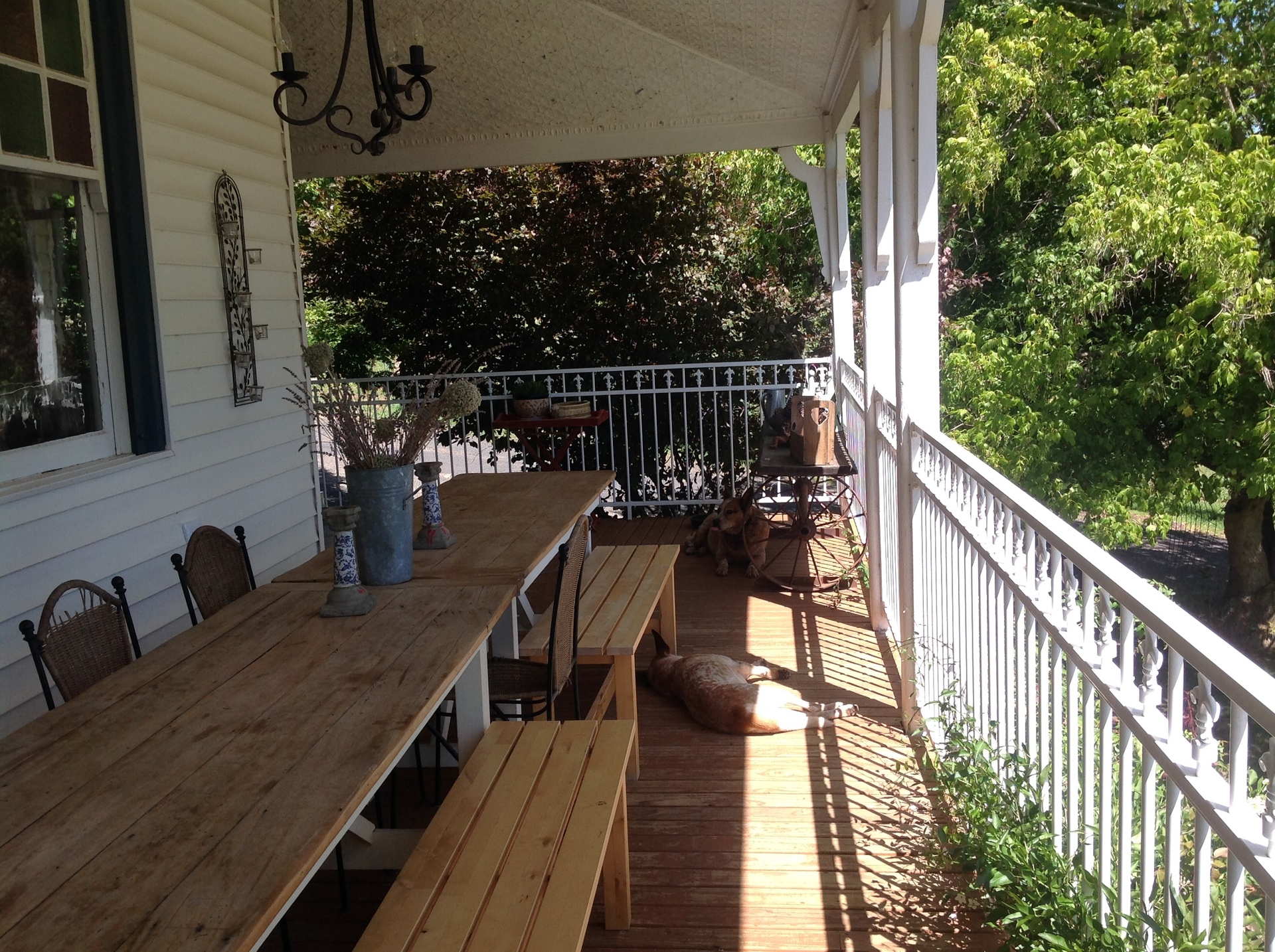 Magnificent views over the showground and village from the large wrap around verandahs which have pressed metal 12ft ceilings and wooden decking.