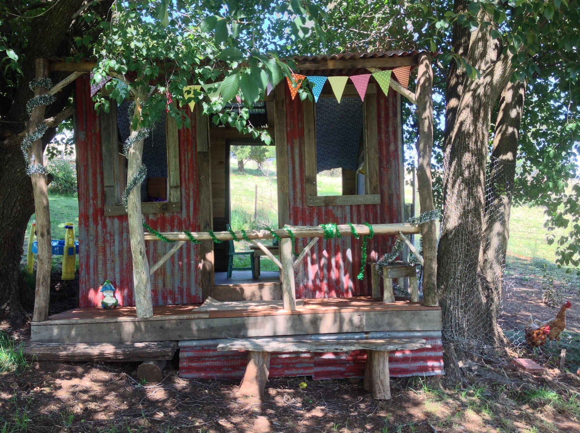 A large covered back verandah leads to huge backyard comprising childrens cubby house, chook house, vege garden with fruit trees.