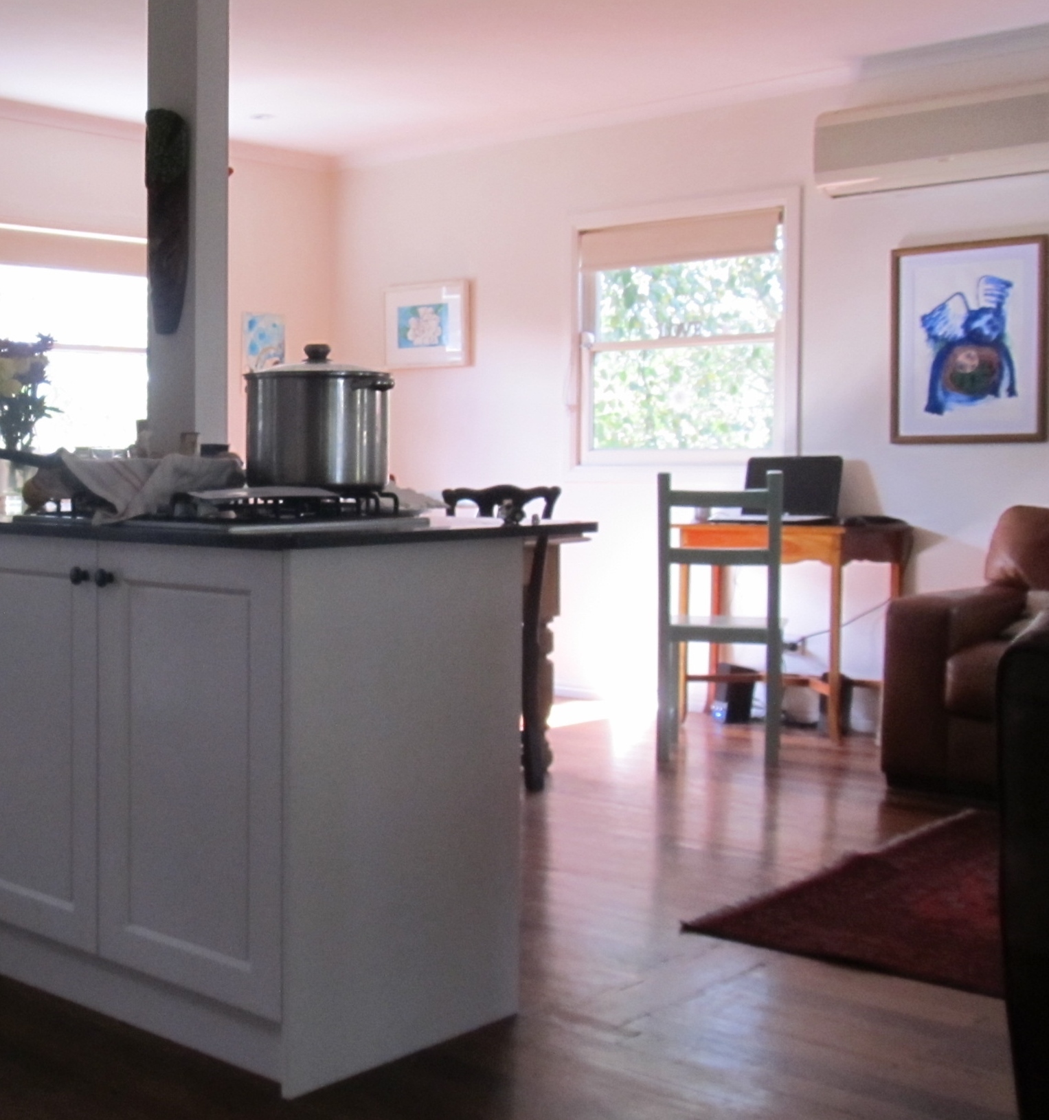 In the open plan kitchen you will find a modern 2 drawer dishwasher, gas stove and built in oven, stone bench tops with plenty of cupboard space. The living area can be opened up to the outdoor area via 2 large timber doors
