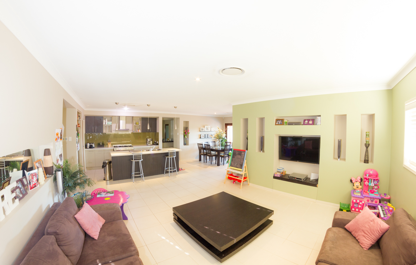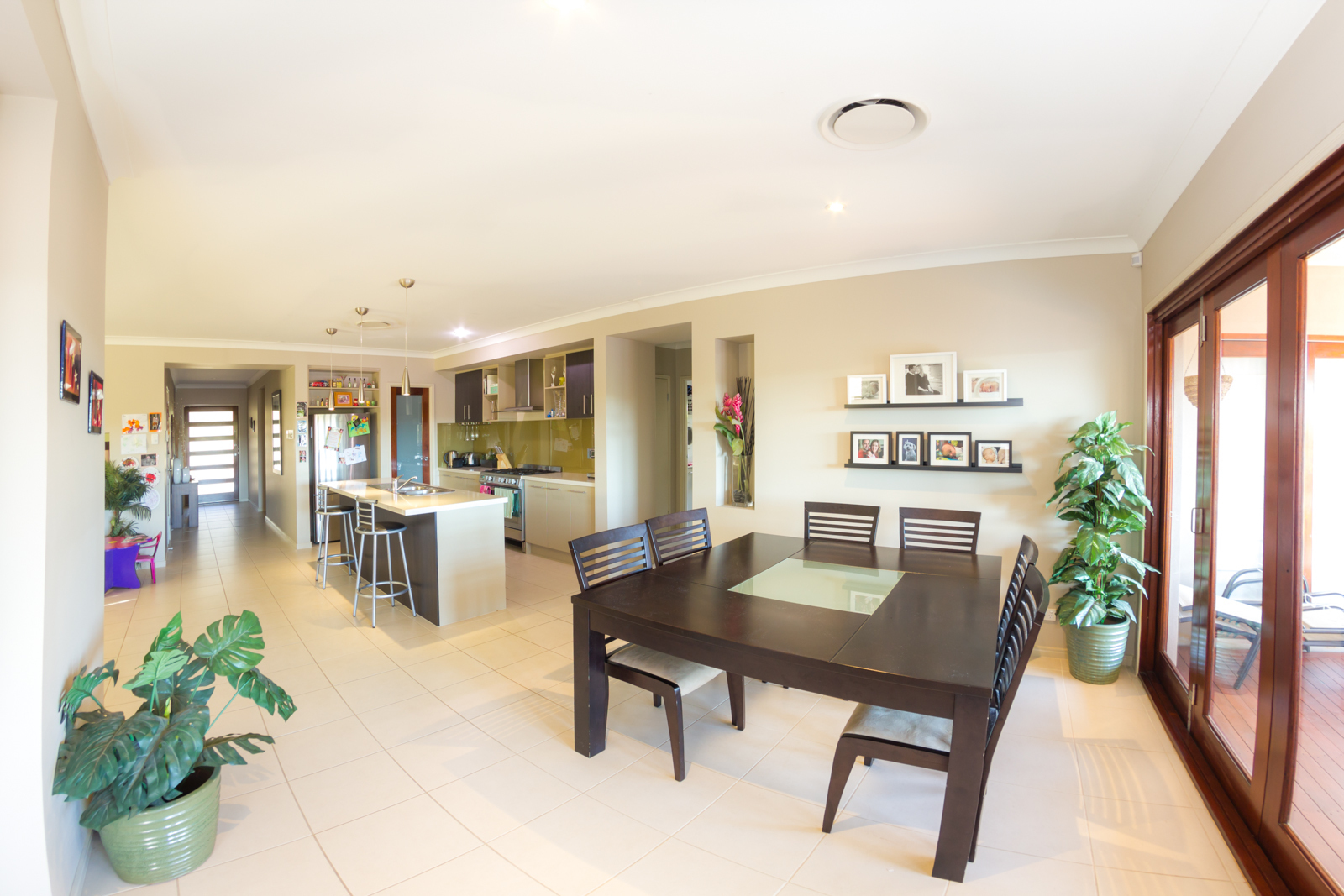 The open plan kitchen boasts Stone benches, walk-in pantry, glass feature splash back and adjoins the dining, lounge and outdoor room, to create that large open plan feel.