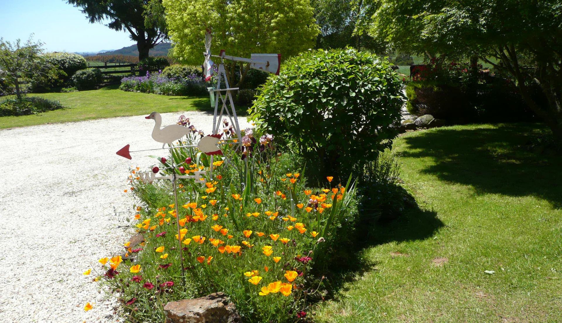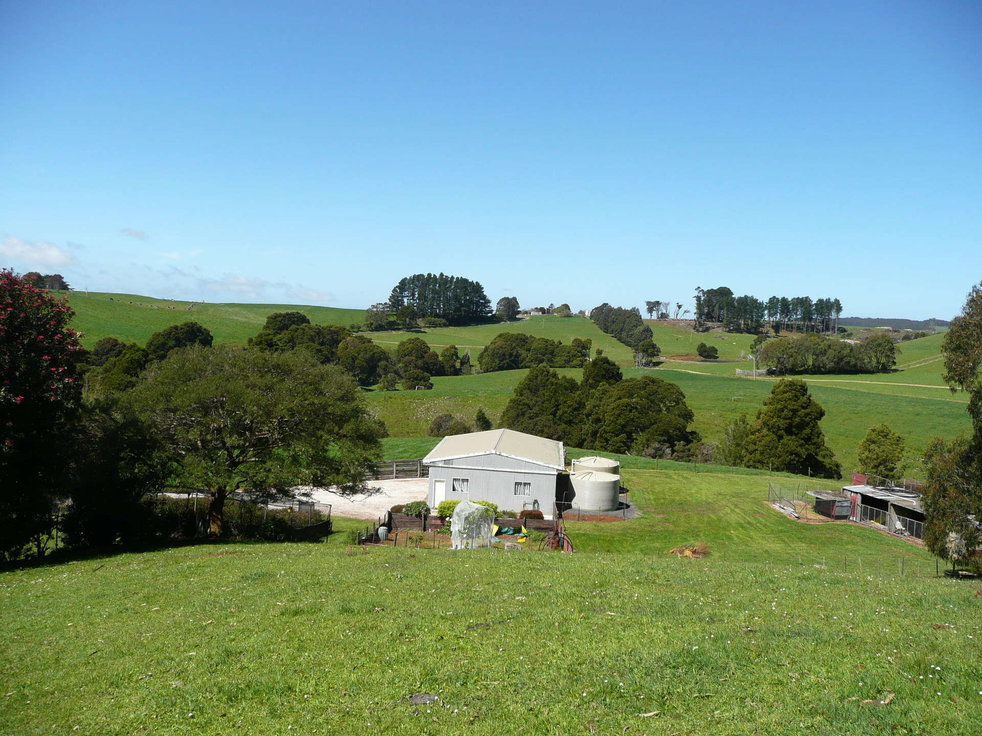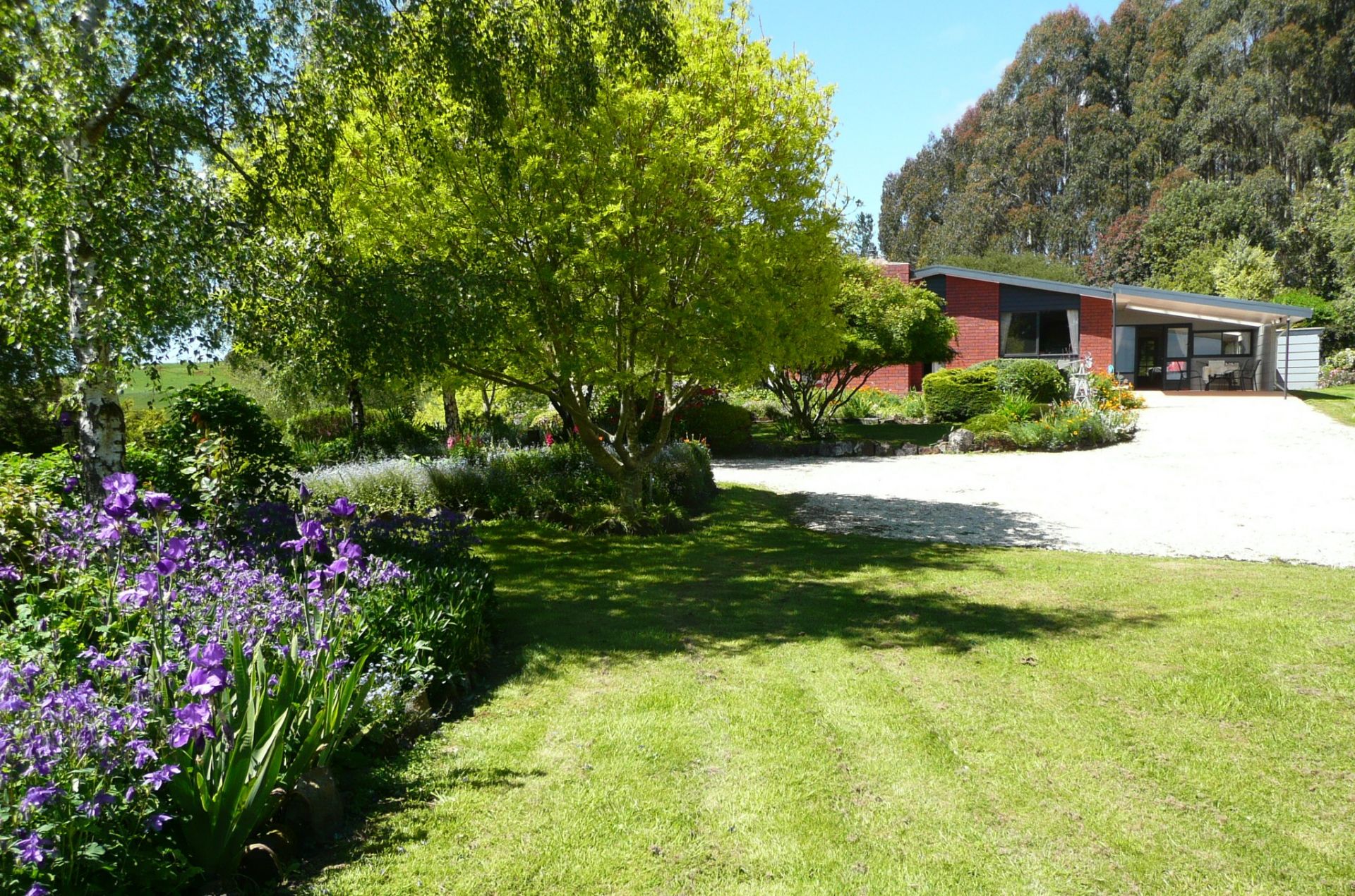 This beautiful garden surrounds the home found on 50 acres of a scenic and productive basalt soil grazing, haymaking and blueberry property located just out of town.