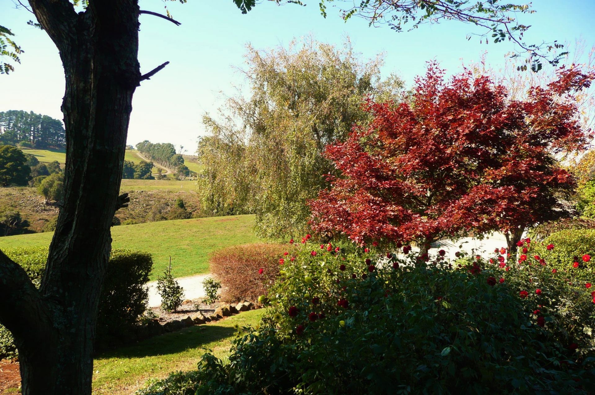 Extensive garden, rural and distant sea views from the house as well as views to Black Bluff, Dial Range and Bass Strait from the property.