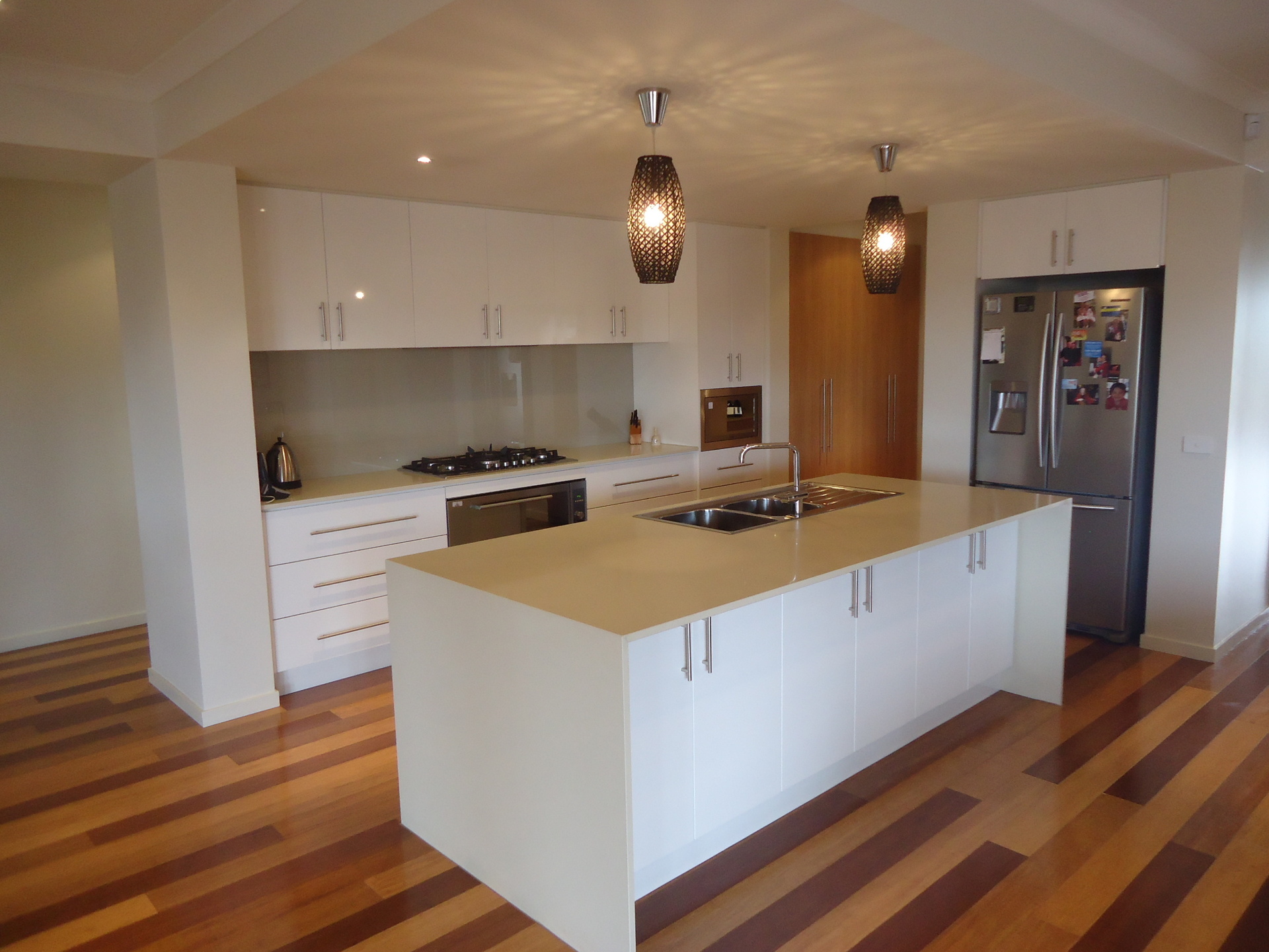 The home includes Caesar stone bench tops throughout, timber louvred window coverings, highly durable bamboo floors in the main living area and beautiful porcelain tiled floors throughout the bathrooms and laundry. Not to forget the enormous family sized laundry and walk through butler's pantry providing more sought after storage and cupboard space.