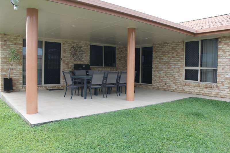 The spacious open plan living is tiled with carpet in the main bedroom and timber look vinyl in the other 3 bedrooms.