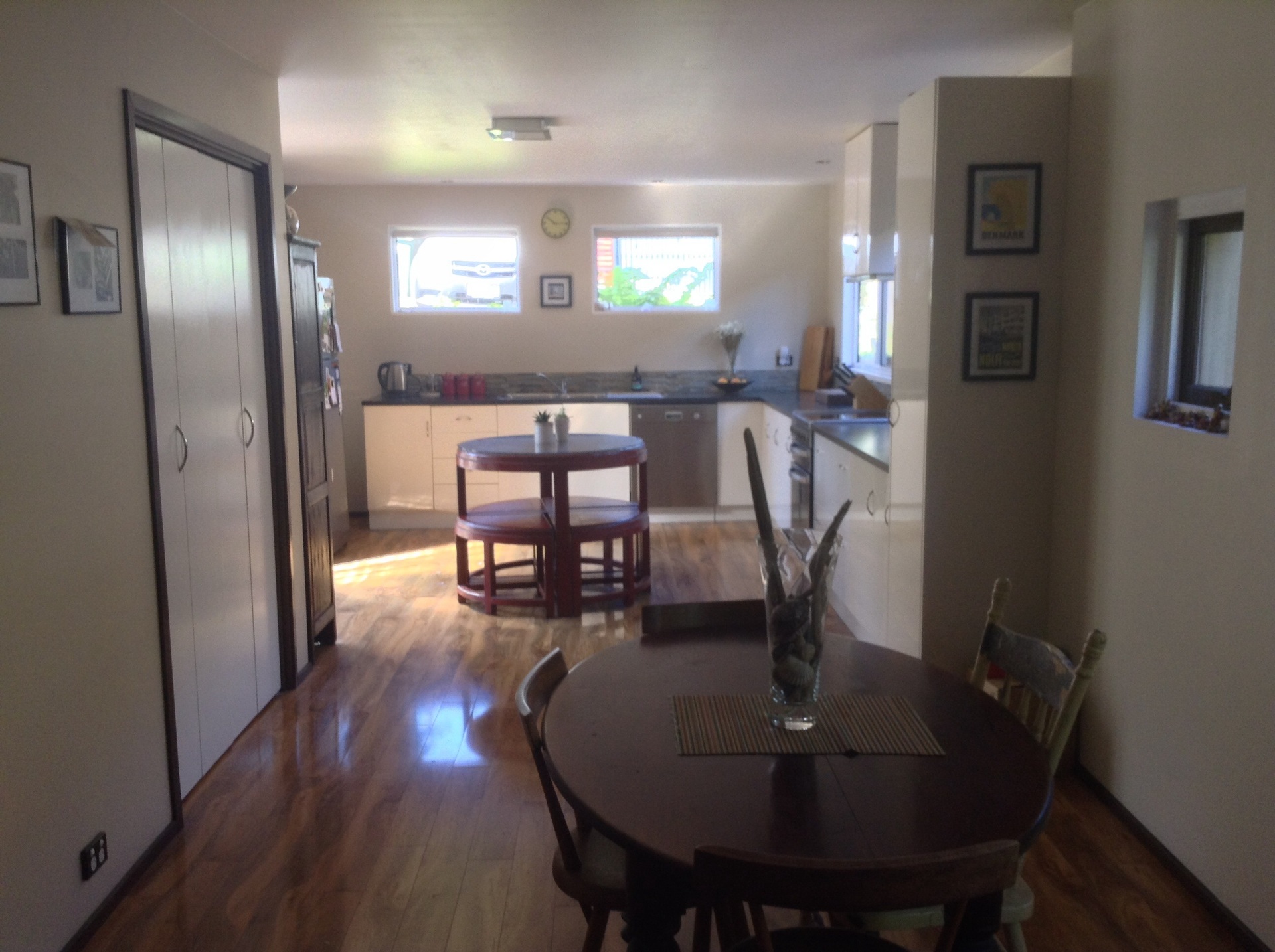 4 double bedrooms with built ins, wide entrance hall, lounge, sunroom, kitchen and dining room, 2 bathrooms both with floor heating, covered BBQ area, a back shed/ studio with deck, large fully fenced yard with established gardens and off street parking for 4 cars.