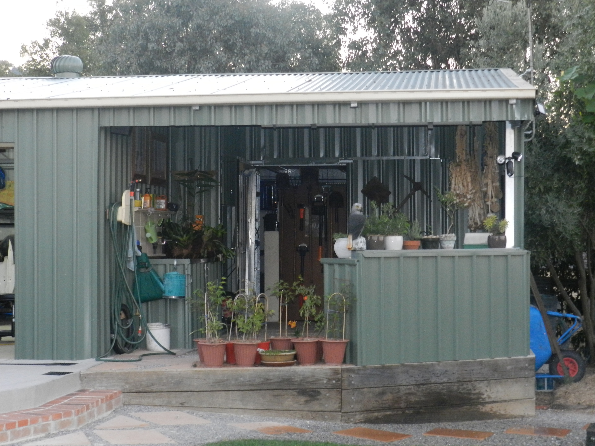 The 14.5 x 8m, powered shed has remote roller door access for ease and security. Features include an 8x8m workshop, trailer or boat storage with mezzanine, potting area finished with large laundry sink and stainless steel benches and ample 4x4m storage area with a large lockable mezzanine for the longer term storage items.
