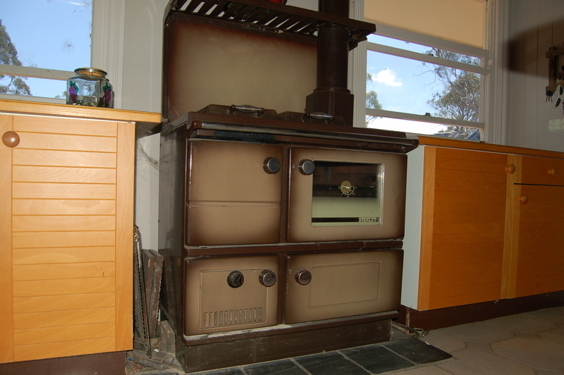 - large kitchen with traditional wood burning Stanley stove plus another gas cook-top&stove