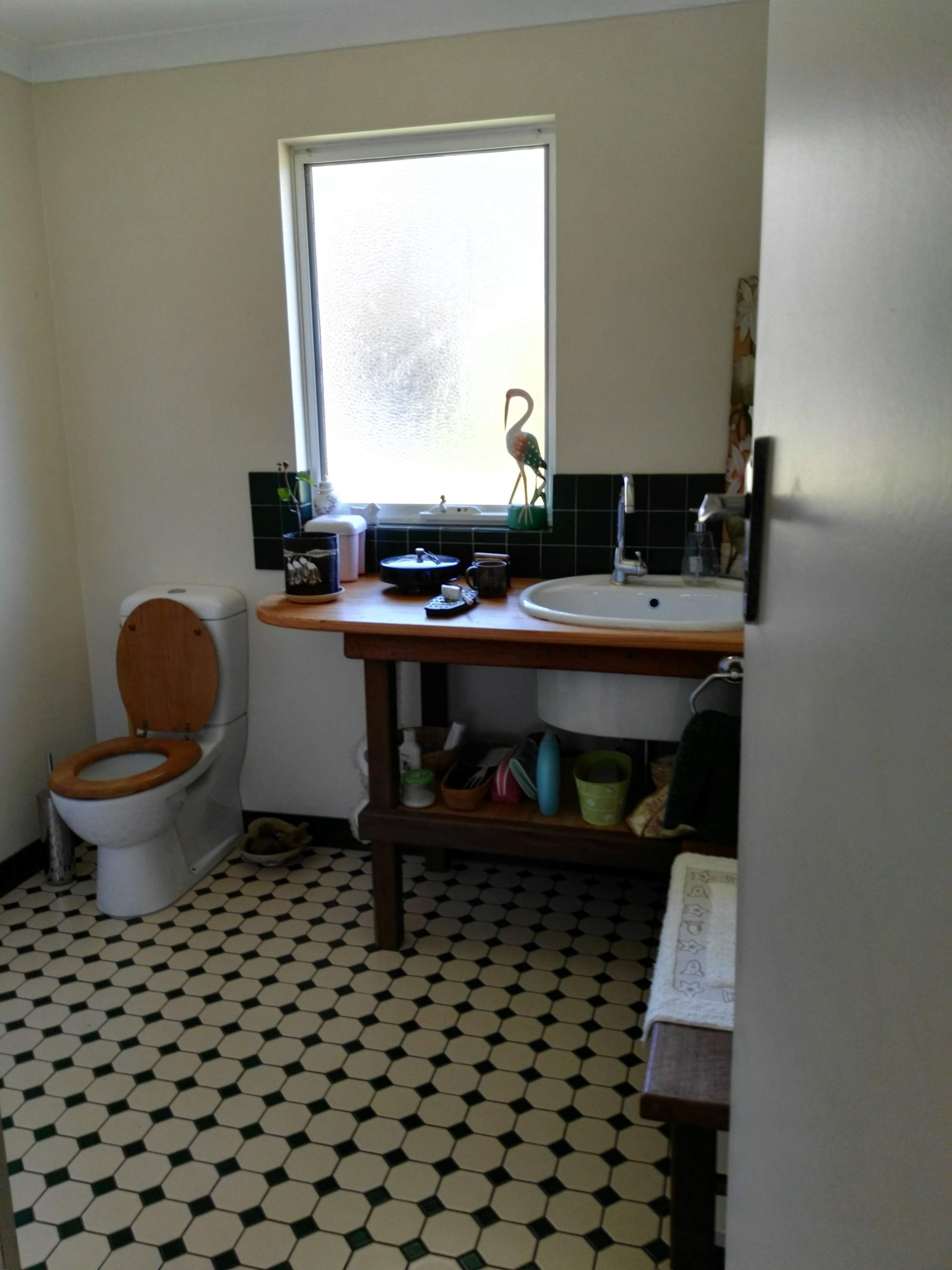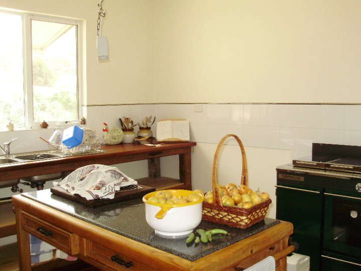 The cosy KITCHEN has a Thermolux wood stove which also warms the home, there is room for a gas stove. The laundry and bathroom cabinets are solid recycled jarrah and pine with Federation style green and cream tiles in all wet areas. Relax on the elevated front verandah and enjoy views onto farmland and water catchment dams.