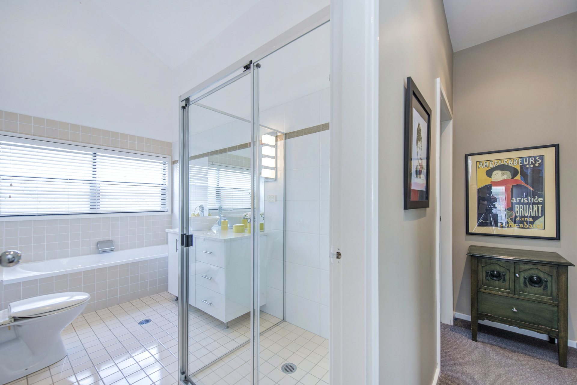 The home features 4 bedrooms, 3 genuine doubles, each with built in robes, ceiling fans, woollen carpet, raked ceilings and loads of storage space. The lovely master bedroom has twin robes with its own ensuite, with a second bathroom servicing the other three bedrooms. A well designed powder room and laundry are conveniently located at the base of the staircase.