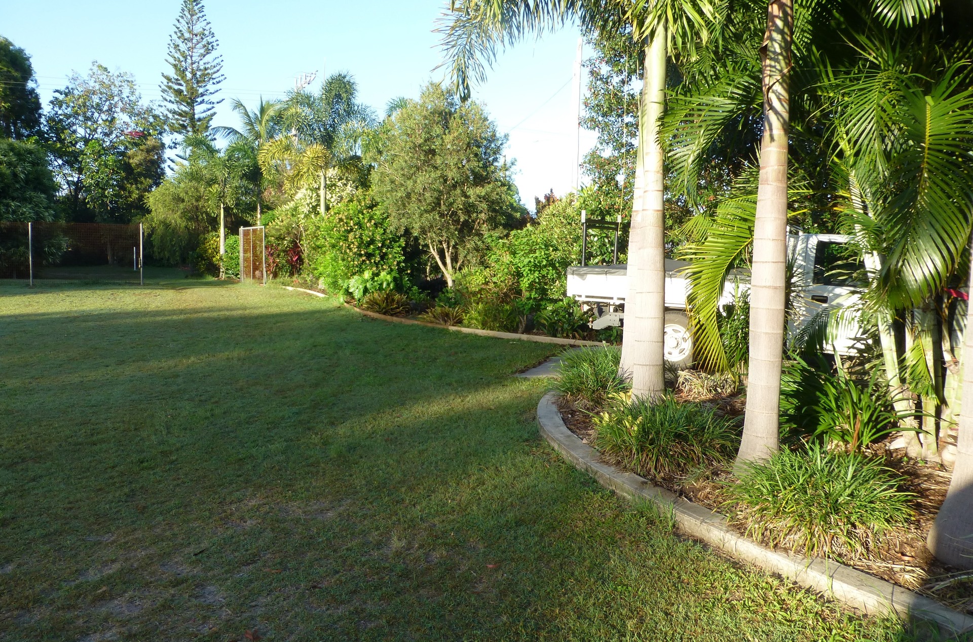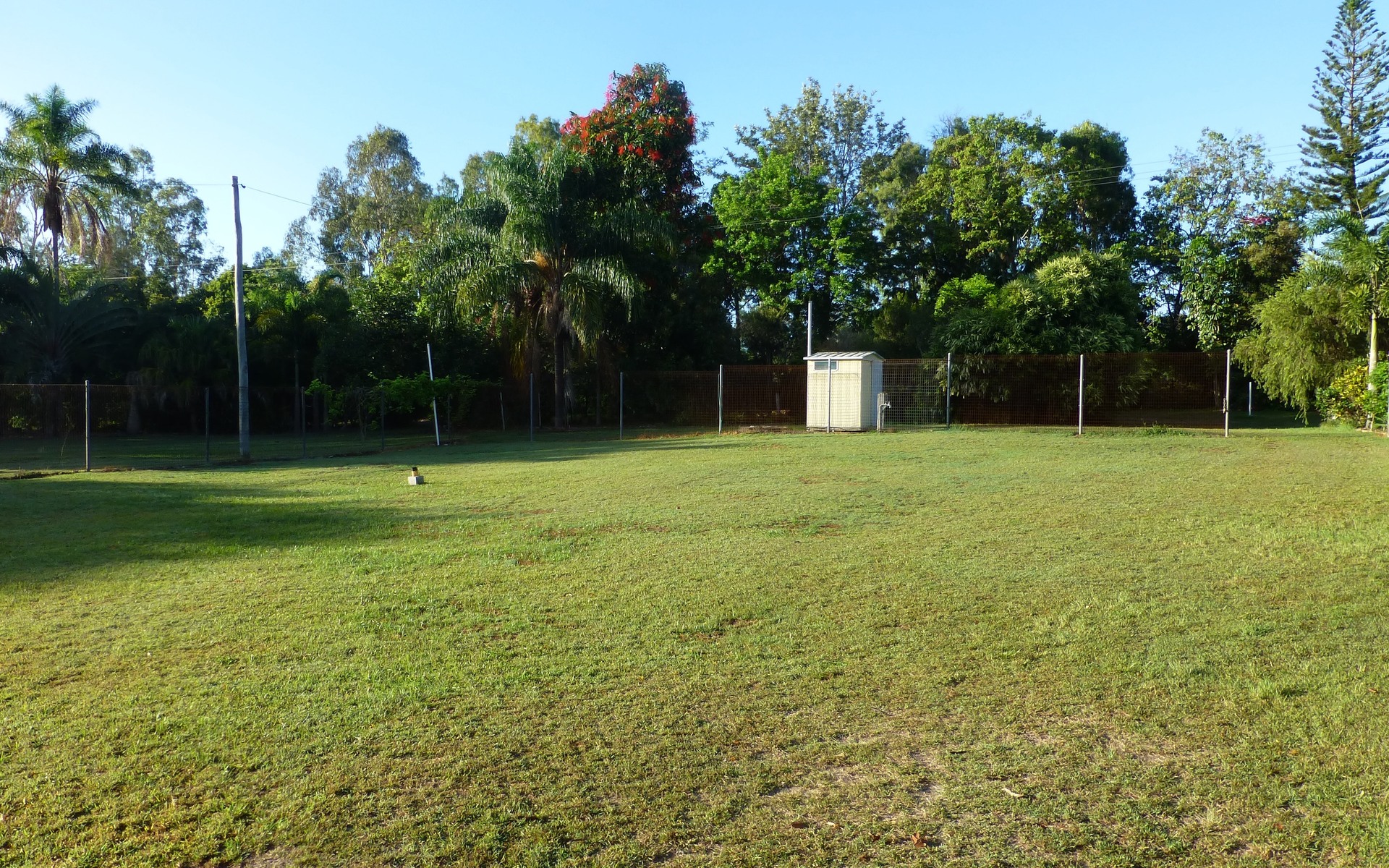 There are 2 lawnlockers - septic and fuel/ tool room. Considerable landscaping has been done with several varieties of plants and trees incl fruit trees. Sandy loan soil. Most of the grass coverage is lawn grasses. Power and water is installed to several points. A concrete driveway has been constructed to give access to the river bank which is the southern boundary. Barramundi can be caught from the riverbank.. There is also a point for launching a tinny. View by appointment.