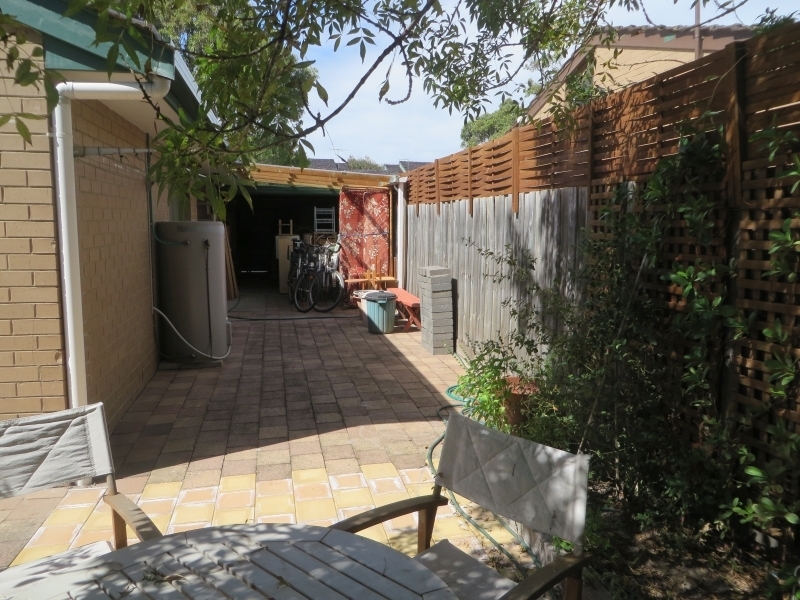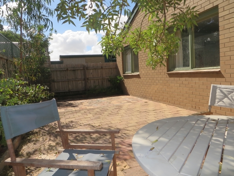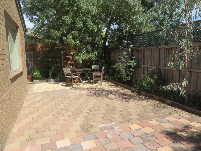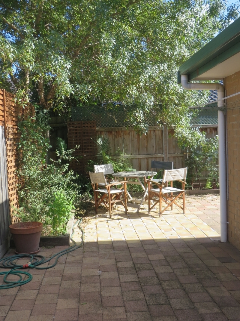 • large, L-shaped courtyard with shrubs, trees, herb and veggie garden