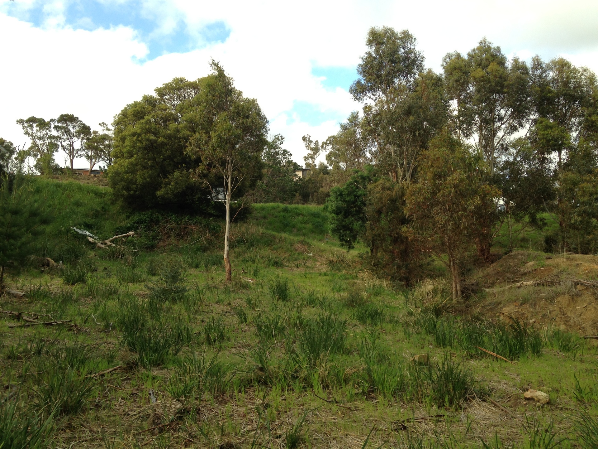 Although steep at the top, the block levels out at the bottom to offer a flat backyard with ample space for the kids to play.